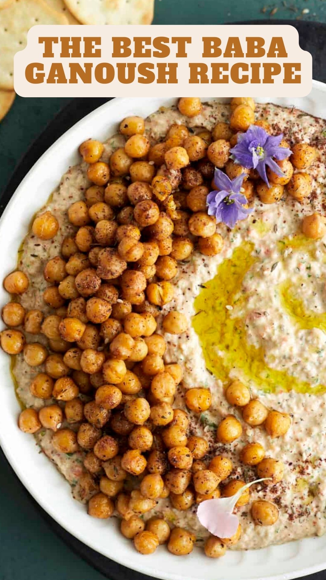 - Transfer the baba ganoush from the food processor to a large bowl and top it with the crispy chickpeas.