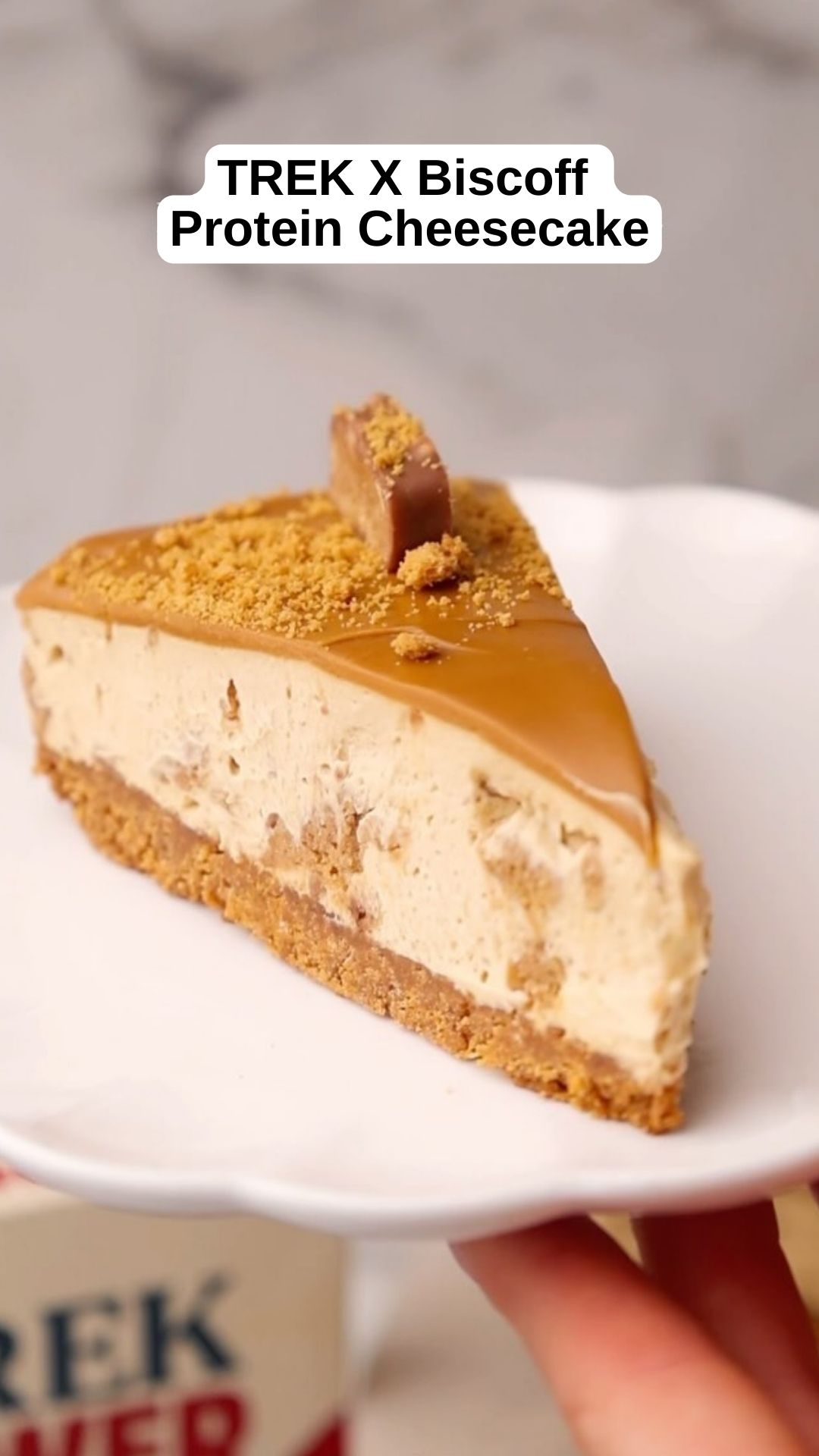 Iconic Biscoff® meets protein-packed TREK Power in this high-protein no-bake cheesecake. With a buttery biscuit base and caramelized biscuit filling packed with crushed TREK bars, you’ll get an incredible high-protein crunch in every bite. Topped with a smooth Biscoff® drip and more TREK Biscoff® Power bars, it’s completely irresistible. TREK’s new Biscoff® protein bar gives you 15g of plant-based protein without any artificial sweeteners, using only the best plant-based ingredients and real Biscoff®.