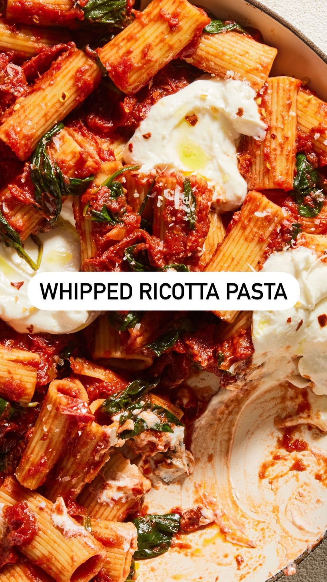 If you’ve ever tried whipped ricotta toast, you know how it can make even the simplest dish taste amazing. Well, the same magic happens with pasta too! Whipped ricotta takes your pasta game to a whole new level, especially when it’s paired with a delicious sun-dried tomato sauce and spinach, like we did here. This dish combines the richness of Alfredo sauce with the tanginess of marinara, creating a flavor explosion you won’t forget.