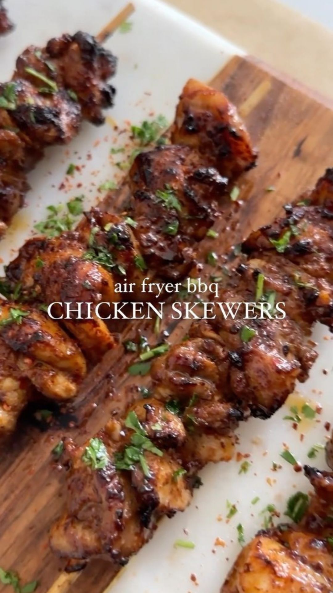 6. Finally, remove the skewers from the air fryer and serve them warm. Enjoy your flavorful BBQ-style chicken skewers!