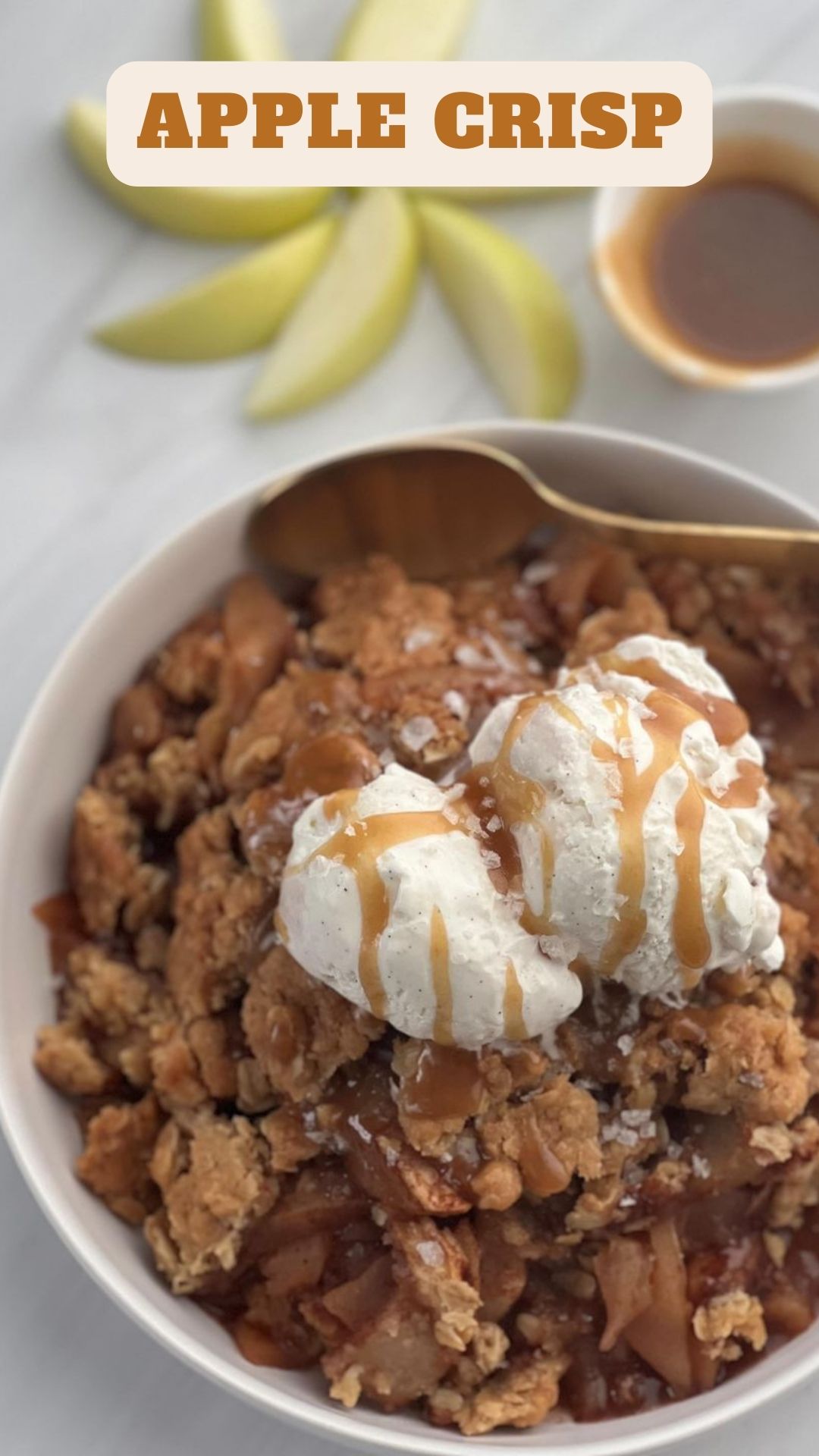 Discover the ULTIMATE Apple Crisp recipe! What’s even better? It’s super easy to make! Picture this: a delightful blend of sweet Granny Smith apples, cinnamon, and nutmeg, all topped with a crunchy oat streusel. And here’s the kicker – we serve it with a generous scoop of creamy vanilla bean ice cream, drizzled with salted caramel and a sprinkle of sea salt flakes. It’s like a flavor explosion in your mouth!