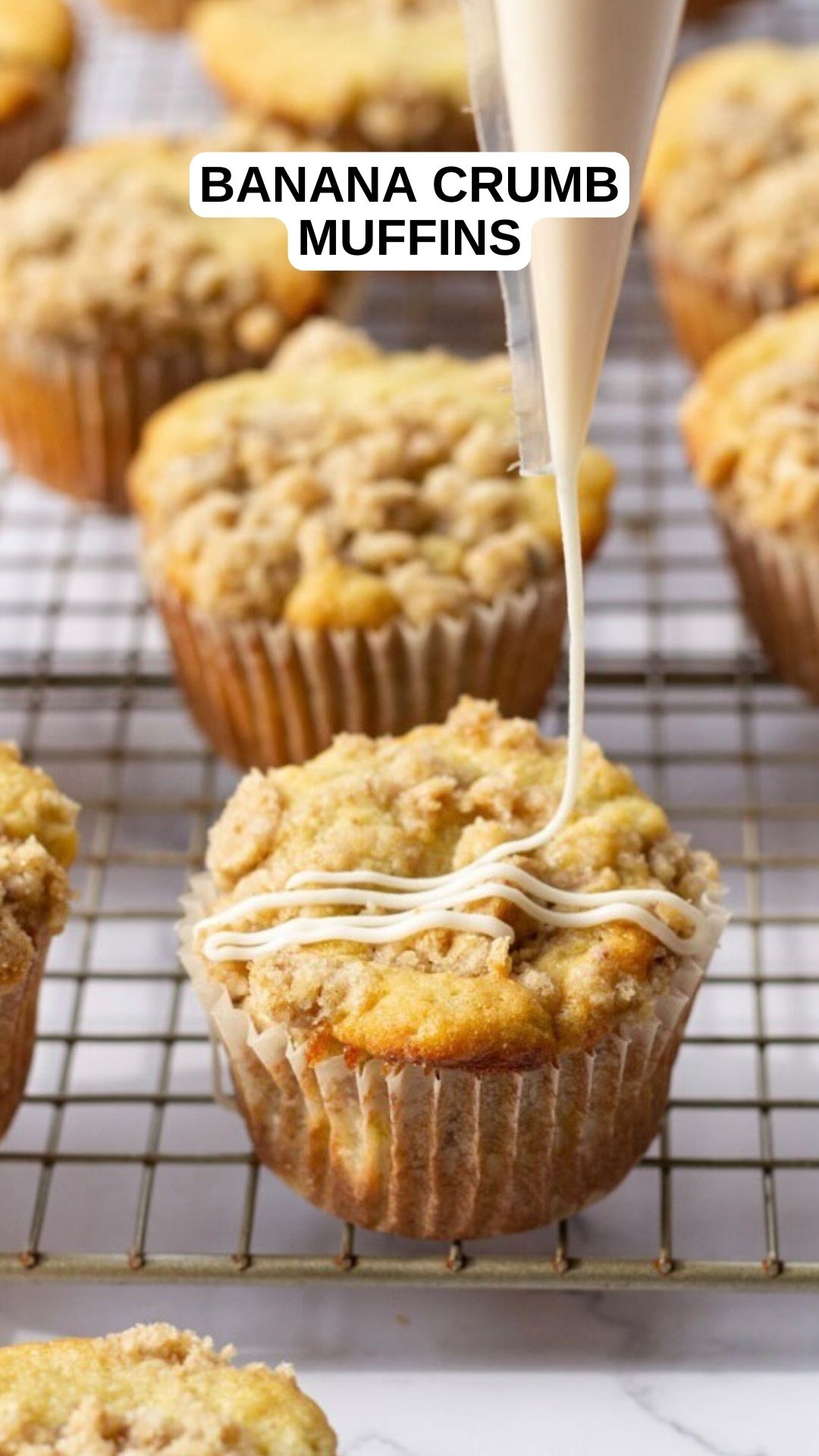 Imagine sinking your teeth into a fluffy, banana-infused muffin, crowned with a generous crumble of brown sugar goodness and a drizzle of heavenly vanilla glaze. That’s exactly what you’ll get with these banana crumb muffins – a delightful fusion of coffee cake and banana bread, all in one irresistible treat.
