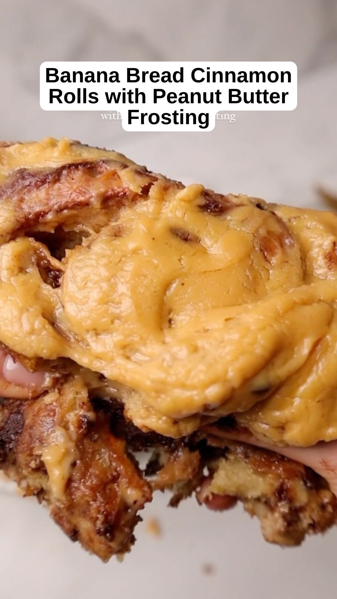 Banana Bread Cinnamon Rolls with Peanut Butter Frosting