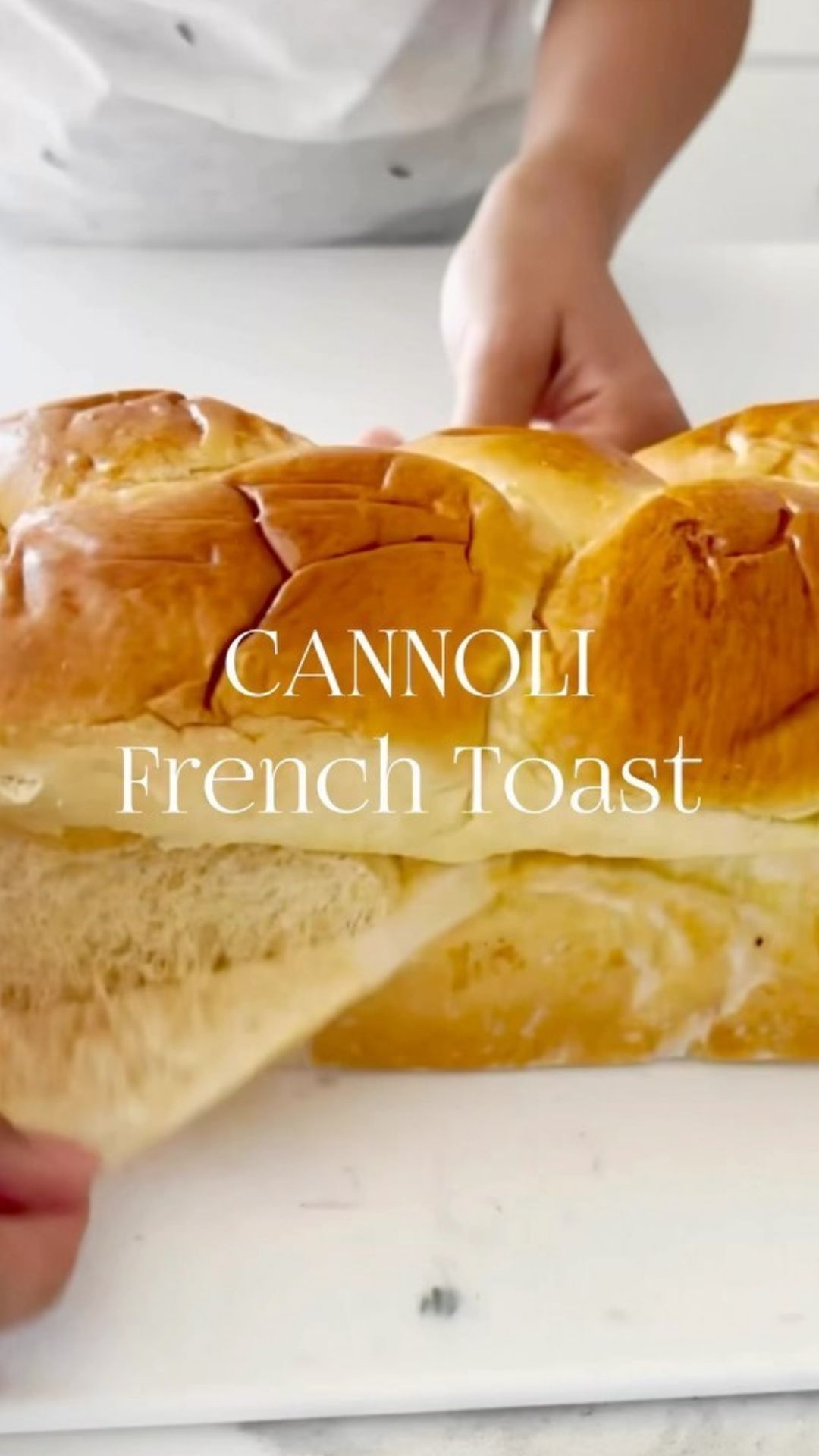 - Take a slice of brioche, spread 2 tablespoons of the cannoli mixture, and top it with another slice. Cut it into four pieces and arrange them, facing up, in a buttered baking dish. Repeat until all your bread is used up.