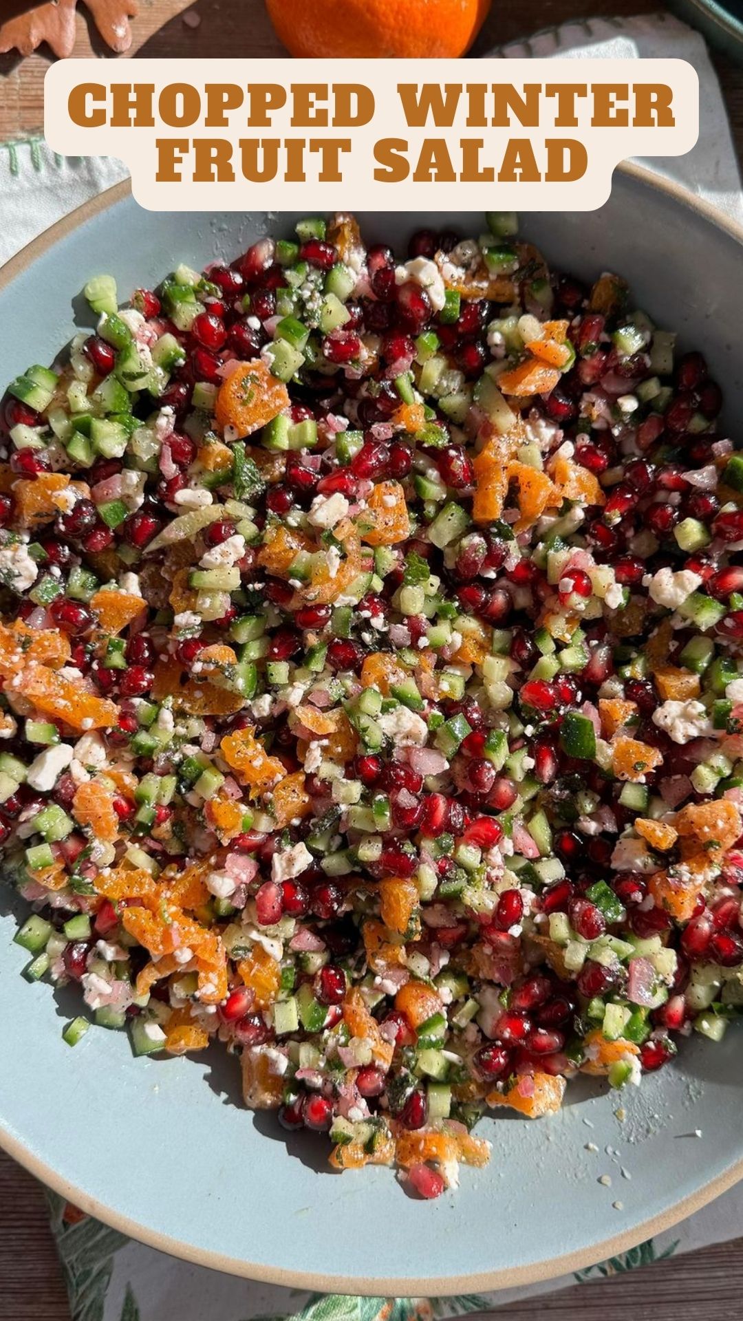 Who’s up for a delightful, easy-to-scoop salad adventure? Get ready for a burst of flavors in this winter-perfect creation, featuring pomegranate, cucumber, tangerines, pickled onions, feta, mint, and a zesty, lemony sumac dressing – a solid 10/10, especially when paired with crispy pita chips! 💯