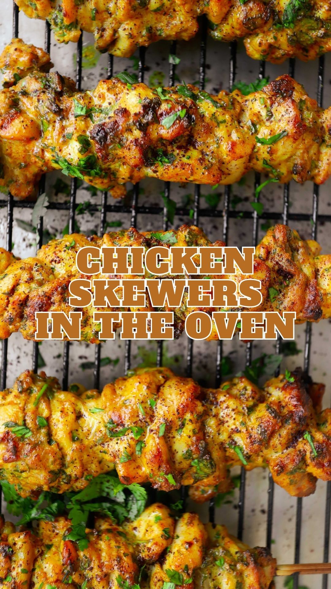 8. Once done, garnish with more cilantro or parsley and a sprinkle of sumac if desired. Serve warm and enjoy your flavorful chicken skewers!