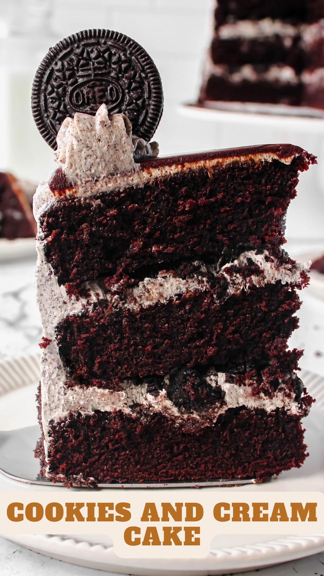 - Place whole Oreos on top, slice, and serve! This cake stays delicious for up to 3 days when covered with plastic wrap in the fridge. Enjoy!