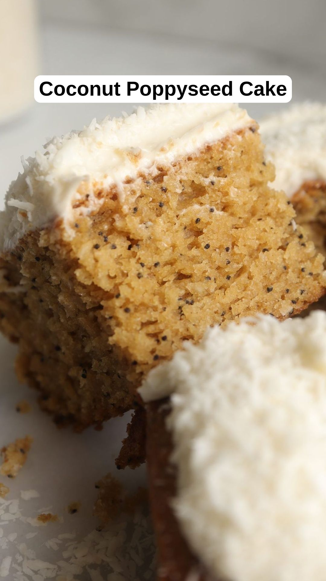 A moist coconut sponge cake with a sweet, nutty crunch, topped with creamy coconut frosting. This easy, vegan-friendly cake comes together in just one bowl and is ready in under an hour!