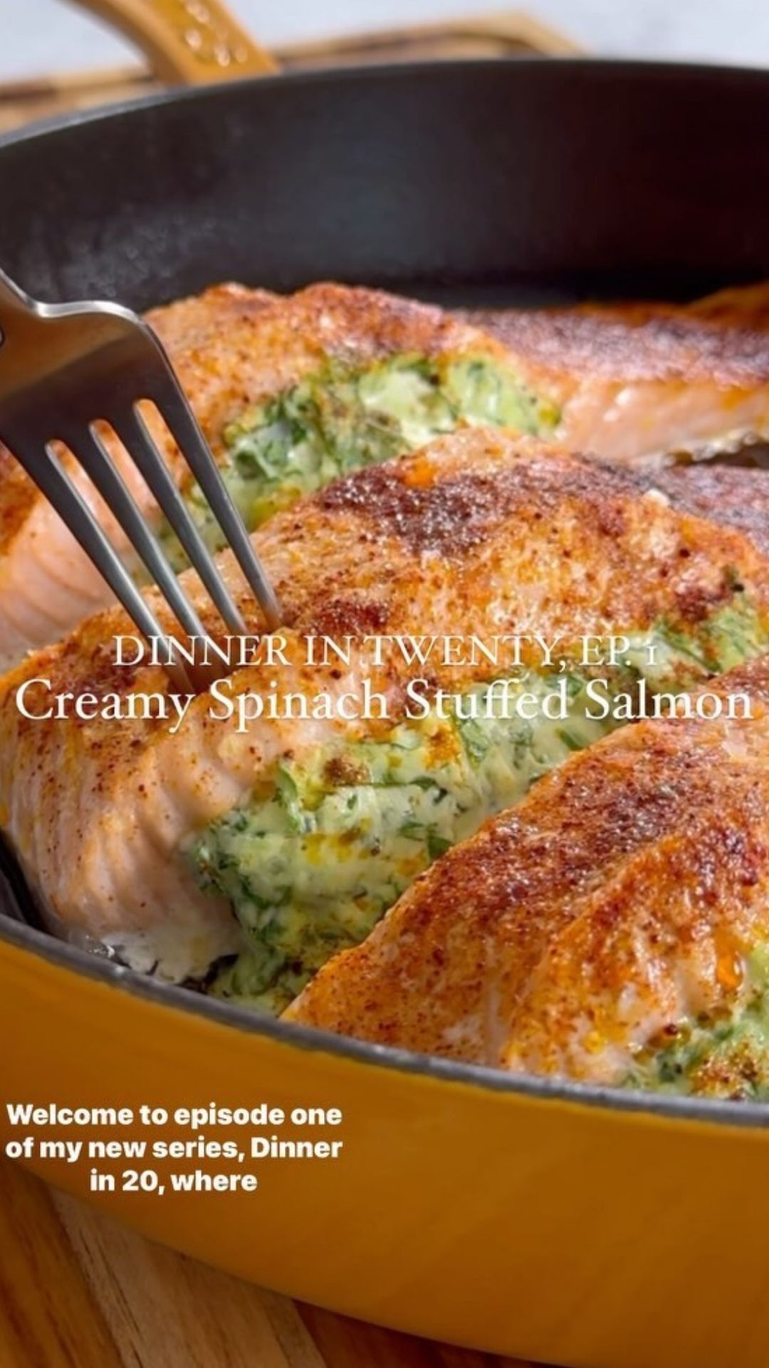 Prepare to fall in love with this recipe just like I did—the salmon is bursting with flavor! It’s stuffed with a delightful mixture of spinach, cream cheese, garlic, and freshly grated Parmesan cheese, then perfectly broiled in the oven for about 13-14 minutes. Every bite is a melty, savory delight.