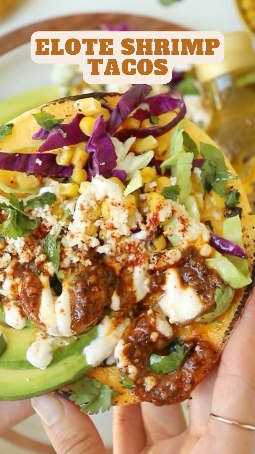 - Serve warm and enjoy your delicious Elote-Inspired Shrimp Tacos!
