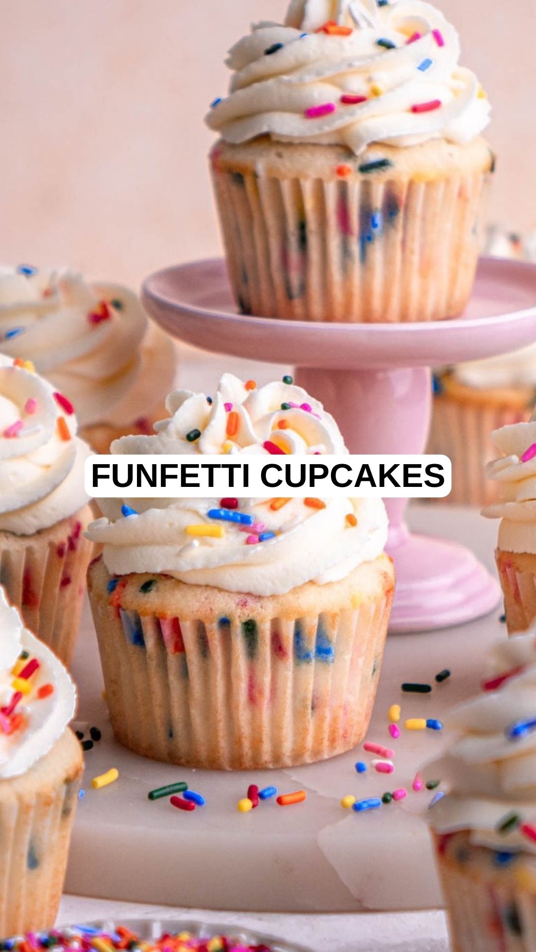 Check out these amazing funfetti cupcakes! They’re fluffy and light white cupcakes packed with colorful sprinkles and topped with creamy white chocolate frosting. They’re perfect for any special occasion, especially birthdays!