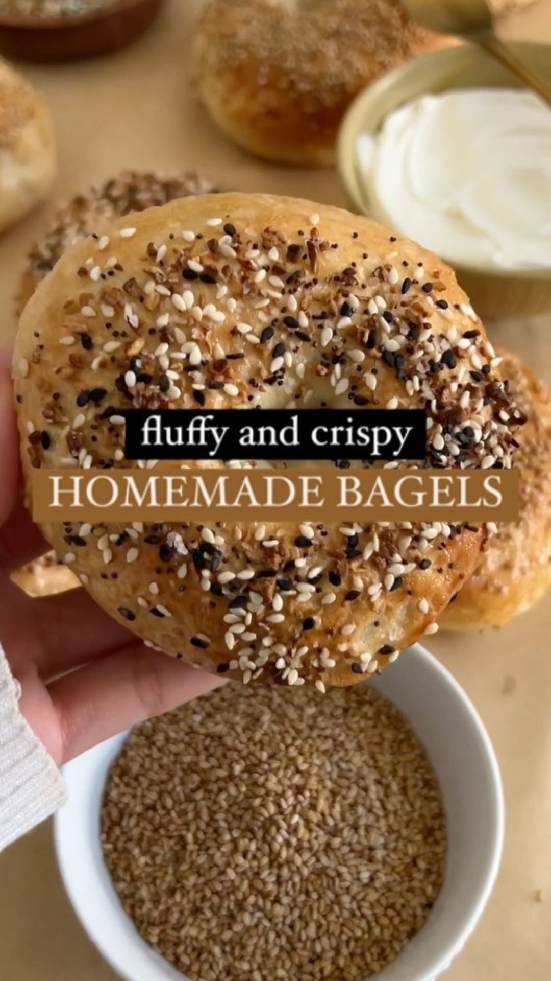 - – Preheat oven to 425°F and bake the bagels for about 20 minutes until golden brown and crispy outside, yet fluffy inside! Enjoy your homemade bagels!