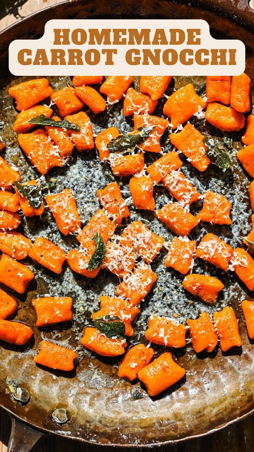 - For the finishing touch, either toss them in your favorite pasta sauce right away or go for a half batch with 3 tablespoons of butter and 10 sage leaves. Let the butter brown, then add in the gnocchi, cooking until slightly crispy, around 5-8 minutes. Enjoy your delicious carrot gnocchi feast!