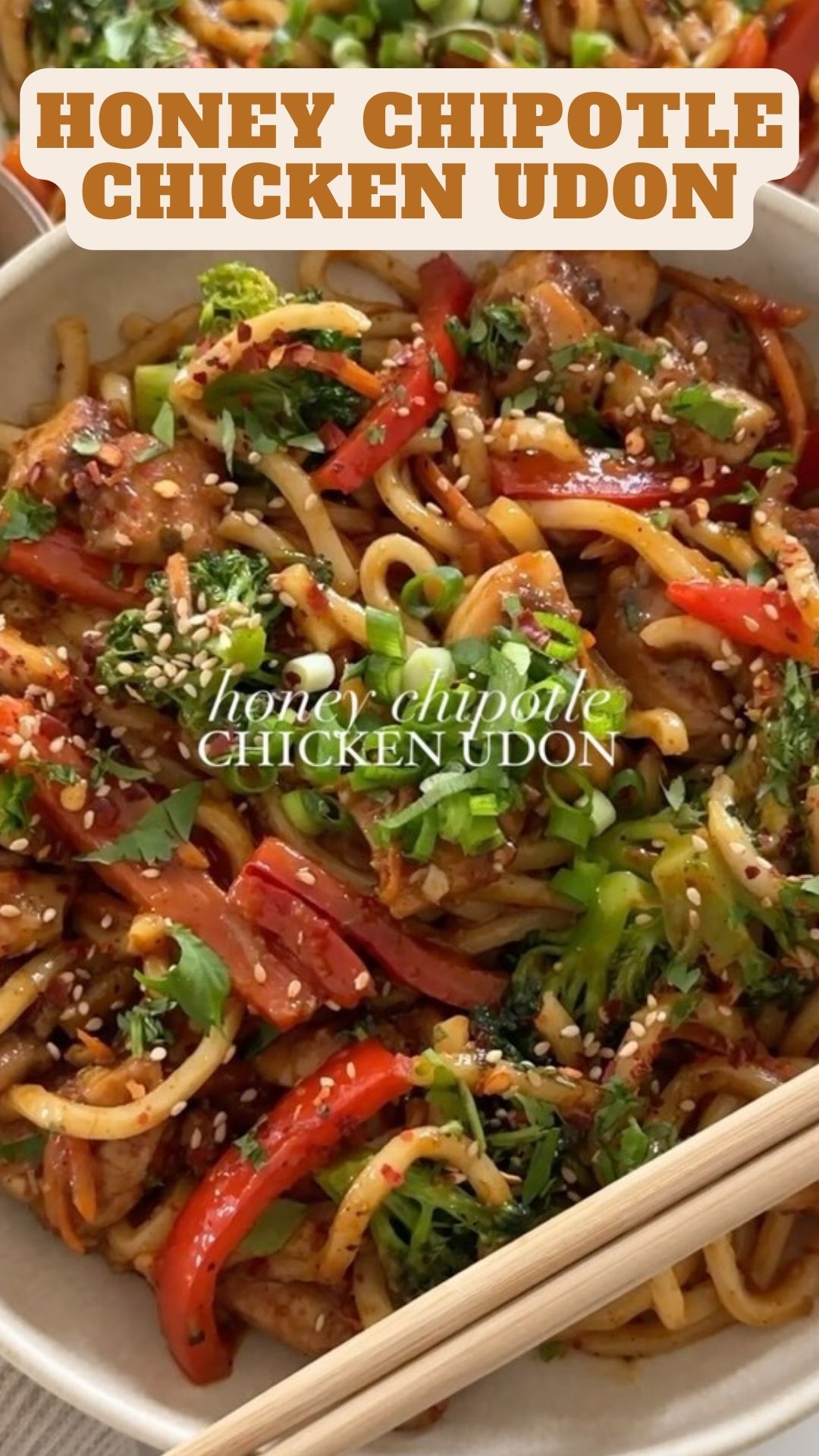 Dinner’s calling: Honey Chipotle Chicken Udon! It’s got a sweet kick and a spicy punch all in one pan. This dish is a flavor explosion, perfect for those busy nights when you need something quick and tasty!