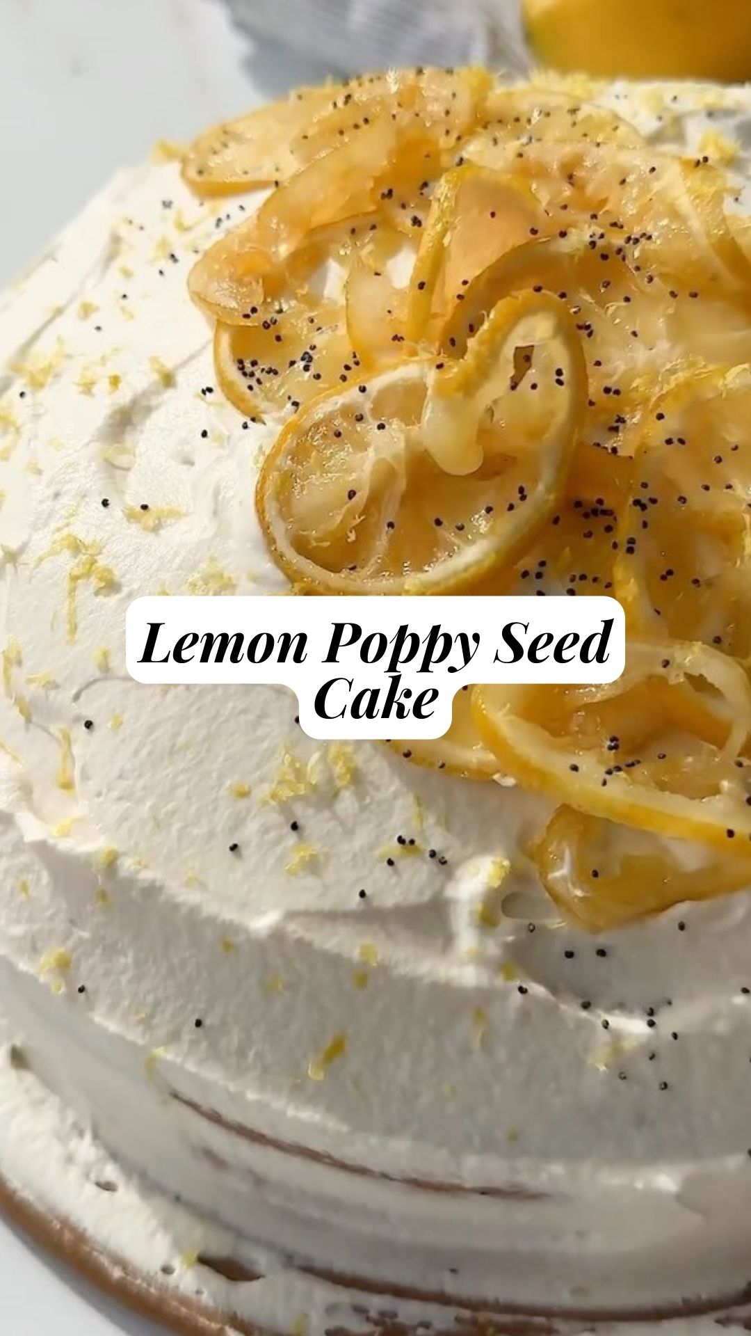 - Decorate with candied lemon slices, lemon zest, and poppy seeds.