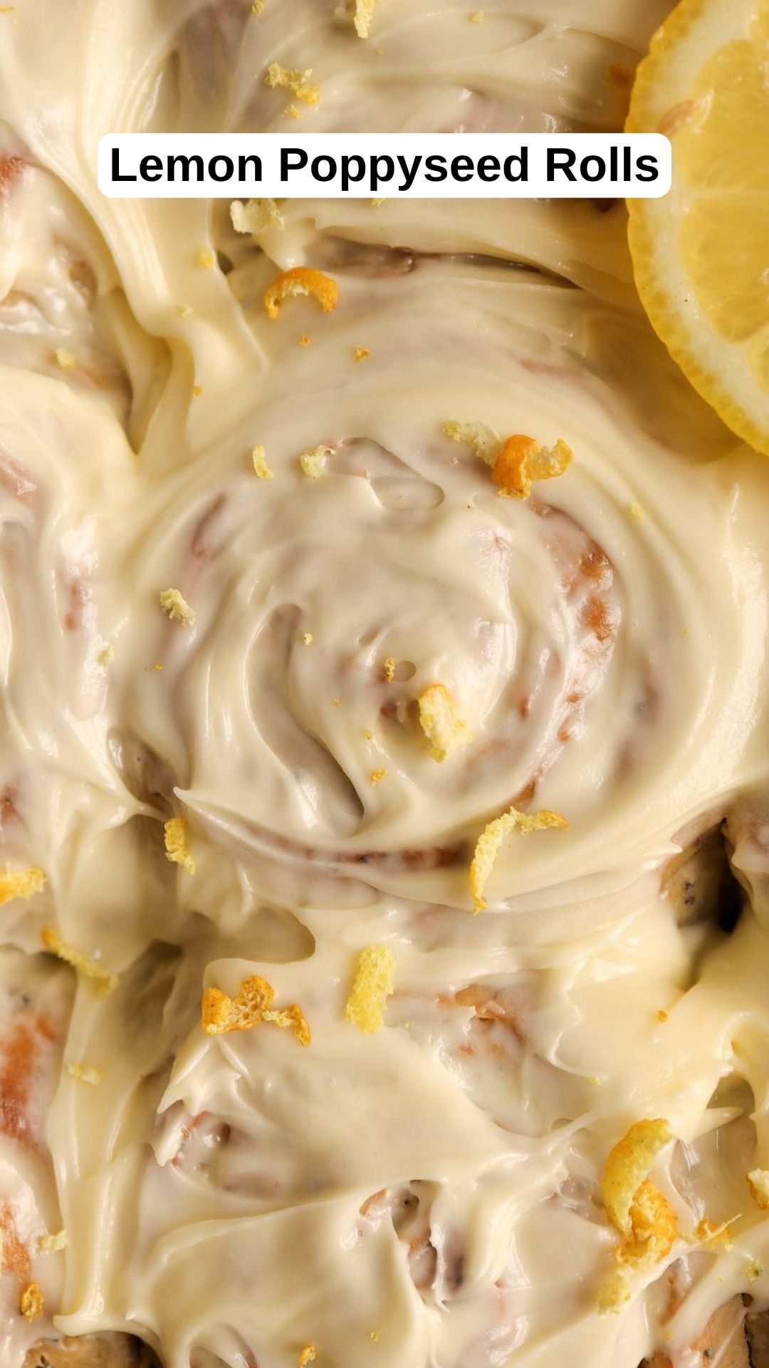 Soft, tender lemon dough dotted with poppyseeds, filled with a sweet lemon sugar, and topped with a gooey lemon cream cheese frosting 💛—these lemon poppyseed sweet rolls are perfect for spring! 🍋