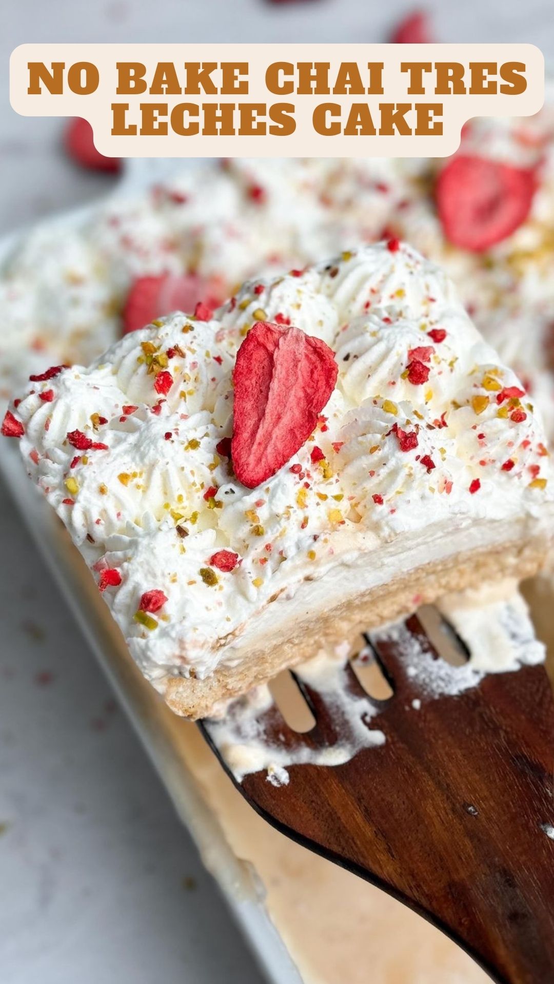 - Serve and enjoy this delightful No Bake Chai Tres Leches Cake!