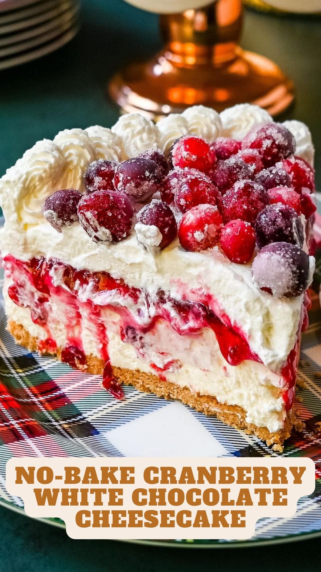 - To assemble, spread fresh cranberry jam over the white chocolate cheesecake filling, add a layer of whipped cream, and top with sugared cranberries. Optionally, pipe whipped cream around the edges.
