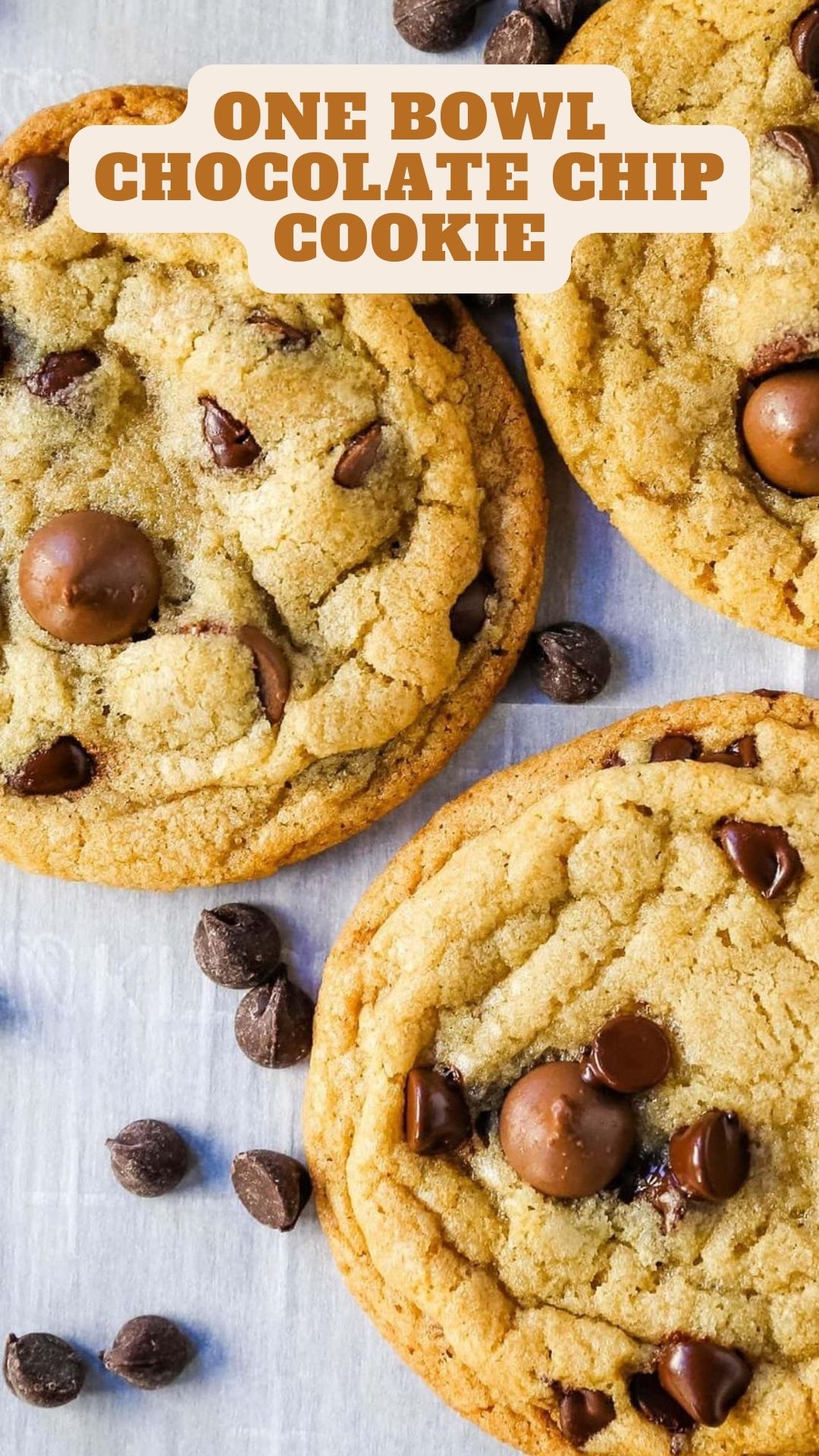 Here’s a super simple CHOCOLATE CHIP COOKIE recipe that you can make without a mixer, all in one bowl. These cookies turn out perfectly chewy with crisp, buttery edges.