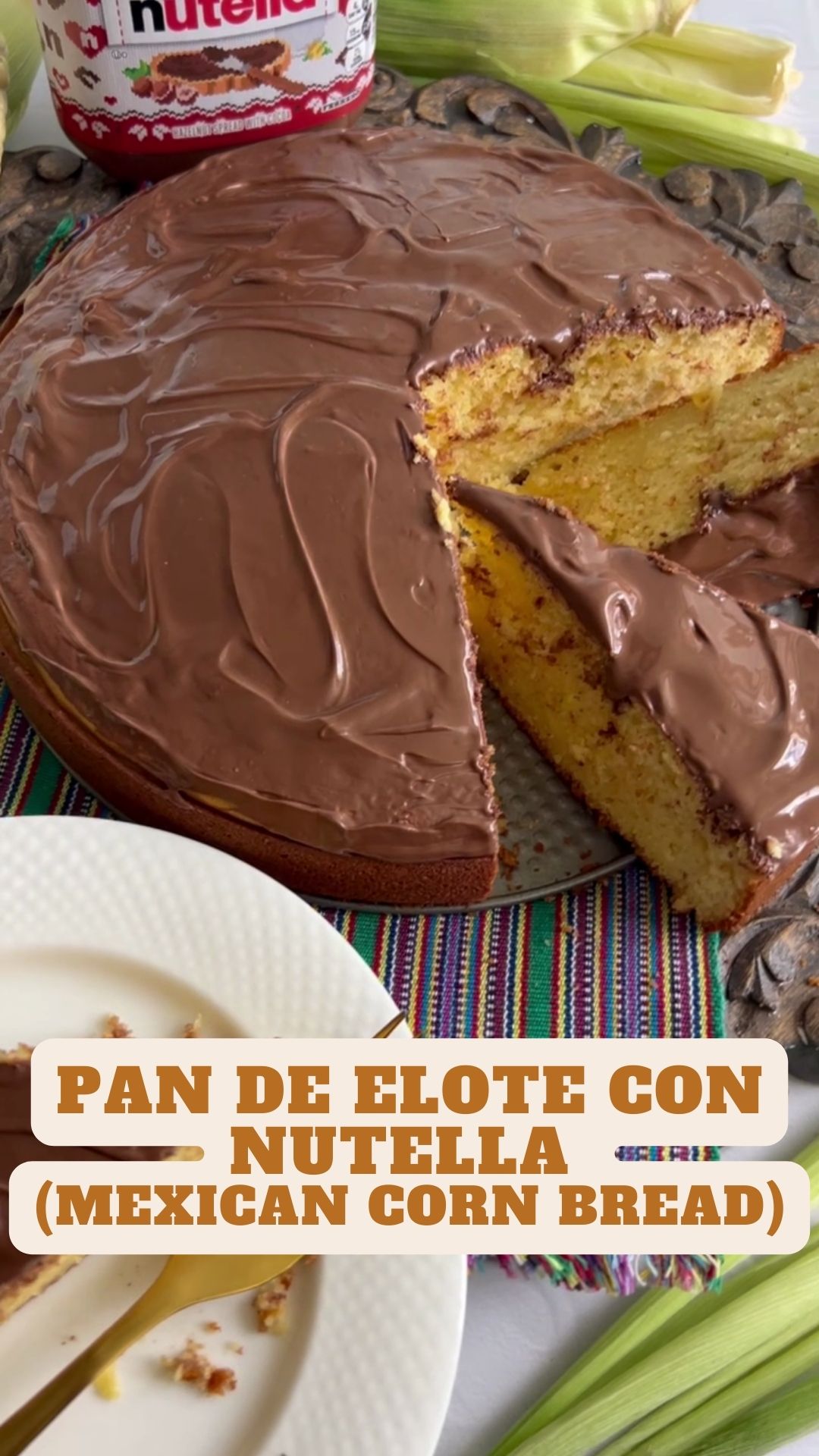 - Once cooled, spread a generous layer of Nutella® on the cake, creating decorative swirls. Slice and enjoy your homemade Pan de Elote!