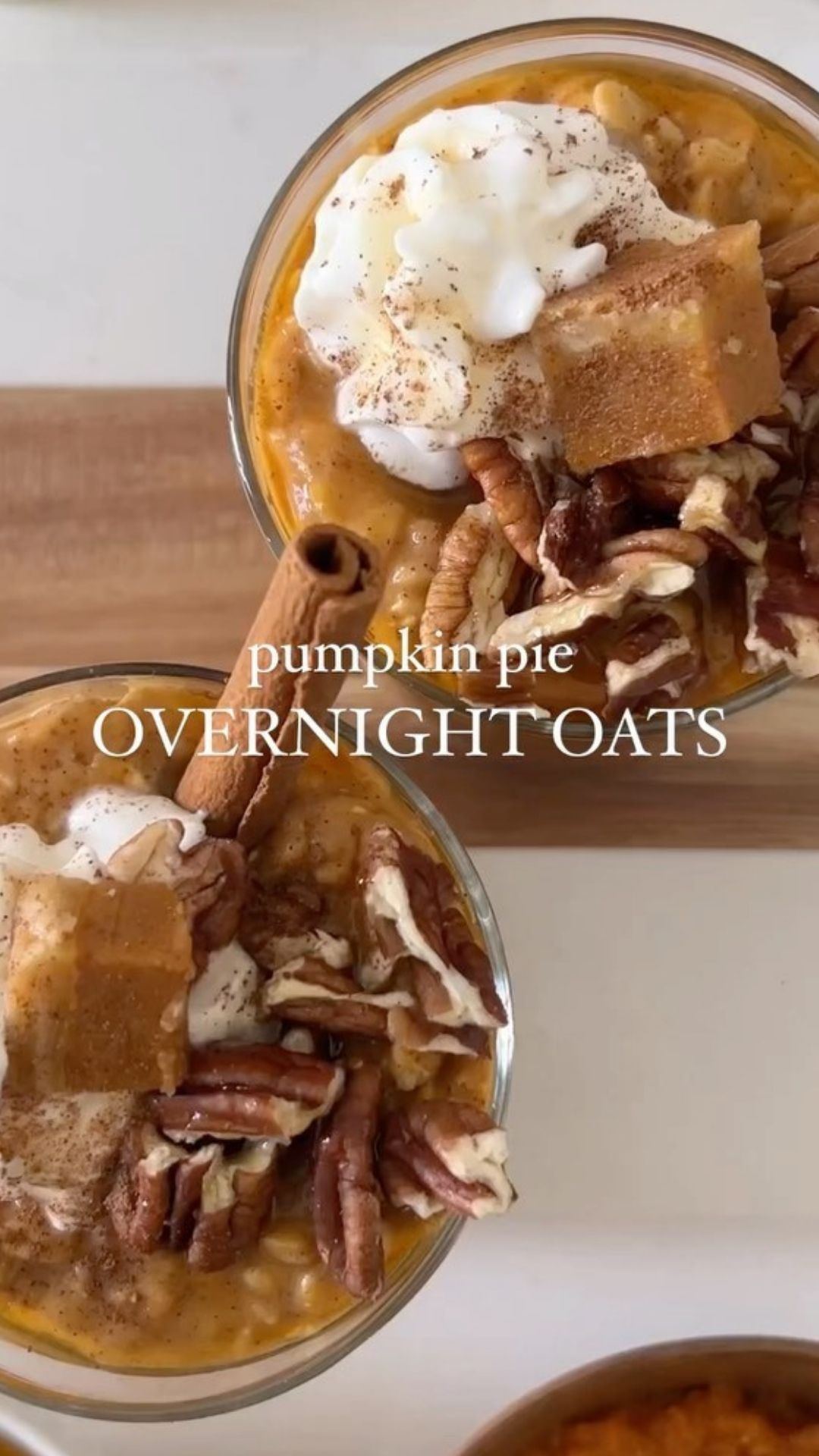 - The next morning, sprinkle a bit more pumpkin spice on top for an extra burst of flavor. You can also add some optional chopped pecans and a dollop of whipped cream for an extra treat.