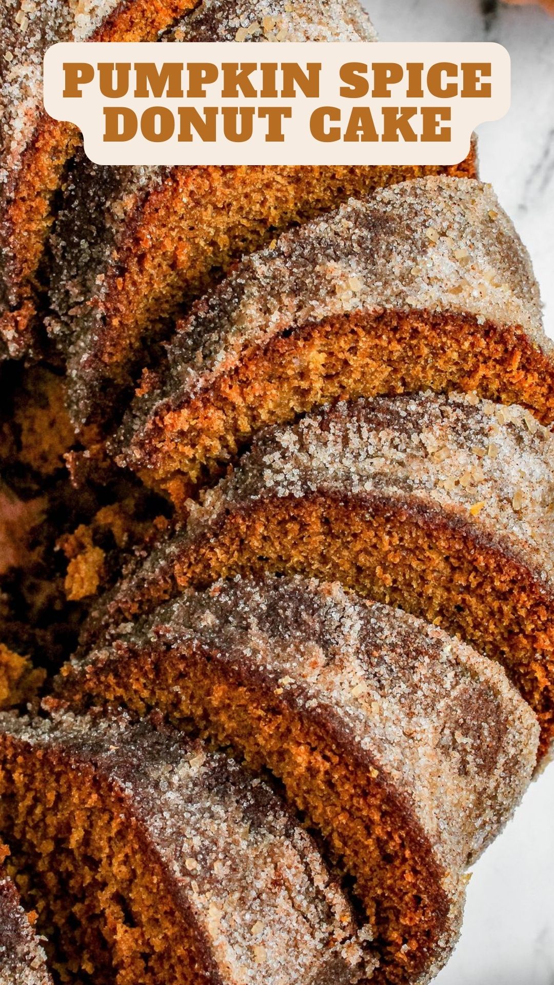 Indulge in the goodness of this Pumpkin Spice Donut Cake – it’s soft, tasty, and adorned with a delightful cinnamon sugar blend infused with the warm flavors of pumpkin pie. Prepare for another delightful slice!
