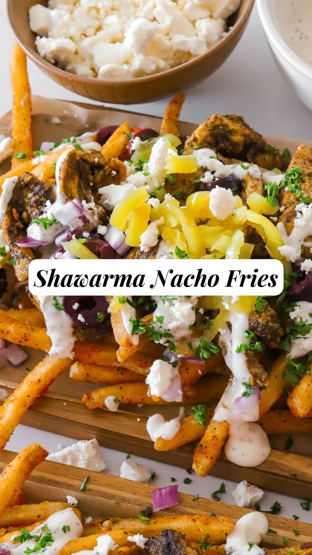 Imagine the ultimate fusion of flavors: Shawarma meets nachos in these mouthwatering loaded fries! Whether you serve them as a shared snack or a hearty meal, get ready for crispy fries, spiced chicken, creamy sauce, and heaps of veggies for an indulgent feast!