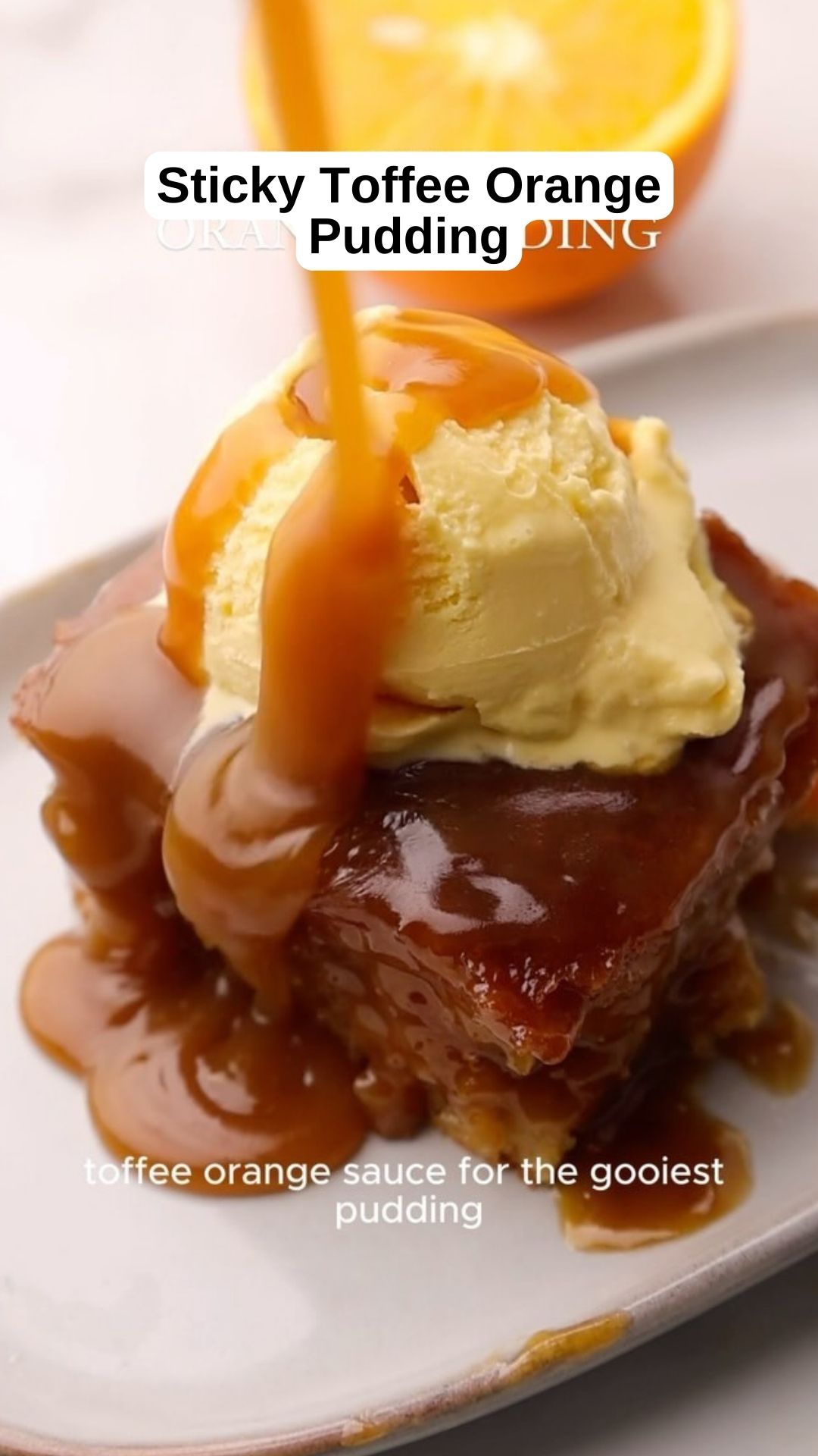 This dessert is like sticky toffee pudding meets moist sponge cake. It features a tender orange sponge soaked in a burnt orange toffee sauce for the gooiest treat. My recipe is egg-free, can be made dairy-free, and is super easy to make.