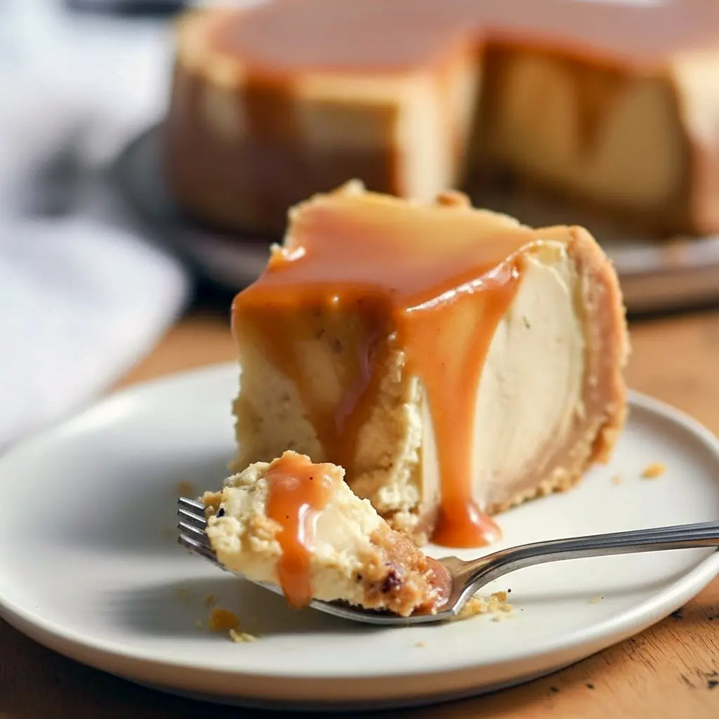 Serve chilled but not ice-cold; pull the cheesecake from the fridge 15–20 minutes before slicing so flavors bloom. Offer a spoonful of warm Sauce For Cheesecake — the Apple Cider Caramel or a simple salted caramel — to drizzle. Garnish with lightly macerated apple slices right before serving so they stay crisp and pretty. Pair with a hot cup of spiced tea, a late-harvest Riesling, or good strong coffee.