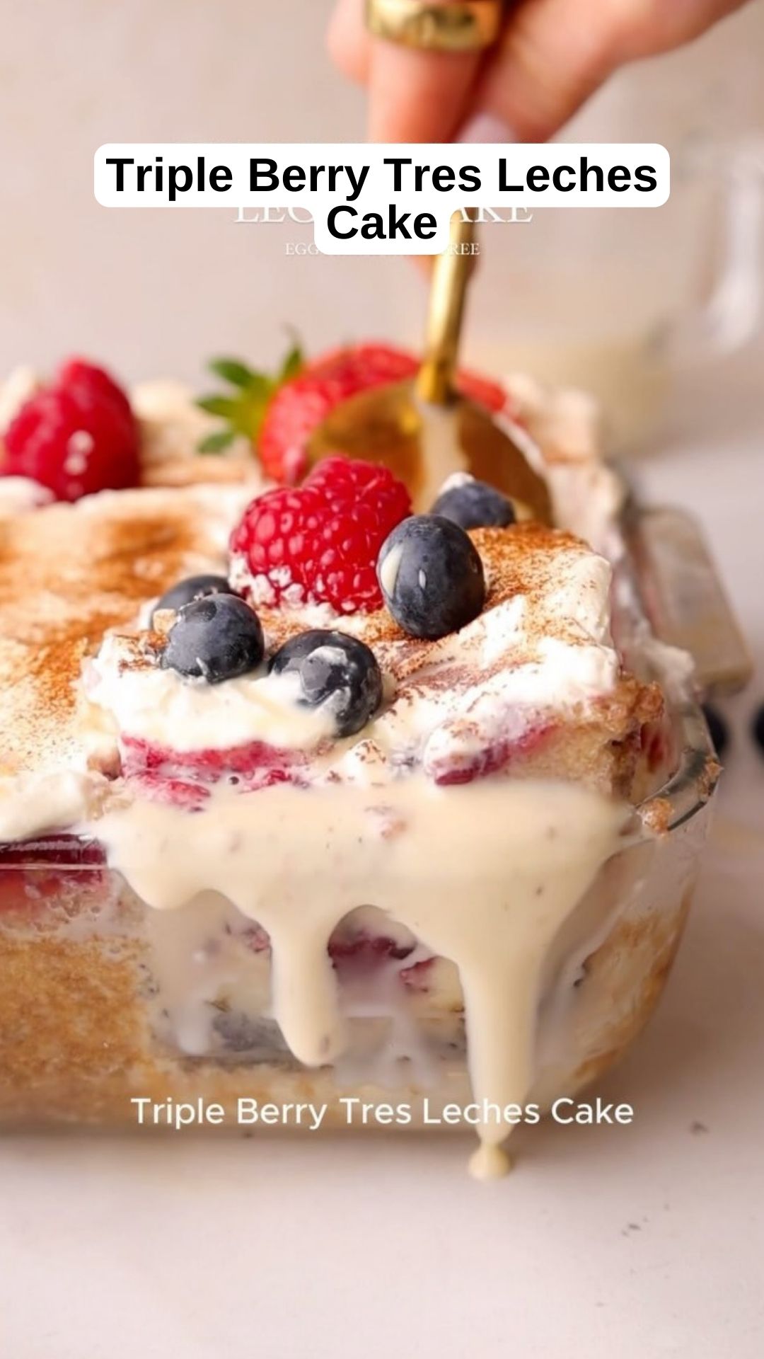 This cake is soaked in a rich, dairy-free milk mixture and topped with a medley of berries for a refreshing and indulgent dessert. This egg-free, dairy-free Triple Berry Tres Leches Cake combines a light sponge cake soaked in a creamy milk mixture and topped with fresh berries. It’s a delicious, vegan twist on the classic dessert.