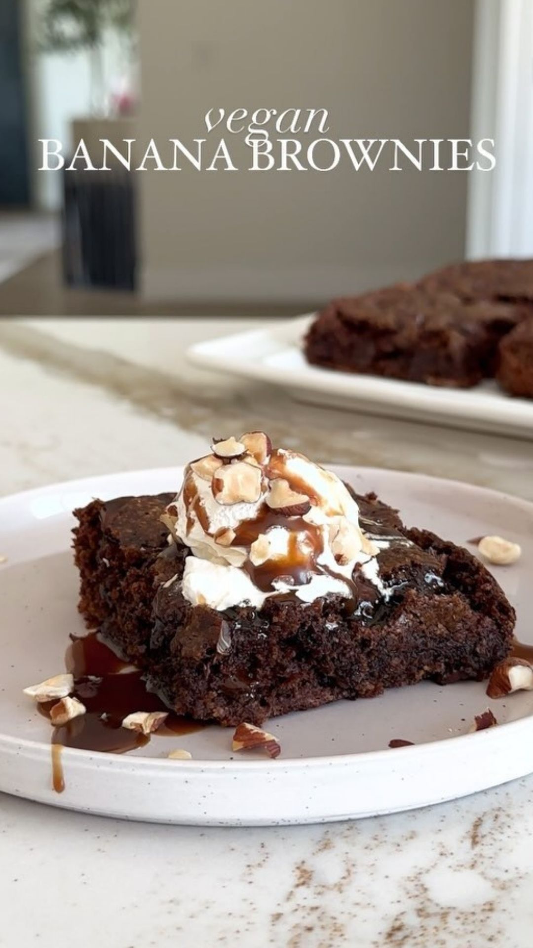 Got some spotty bananas? Make these Vegan Banana Brownies! They’re sweet, indulgent, and secretly healthy. I love mine with Cool Whip, dairy-free caramel, and hazelnuts for the perfect brownie sundae.