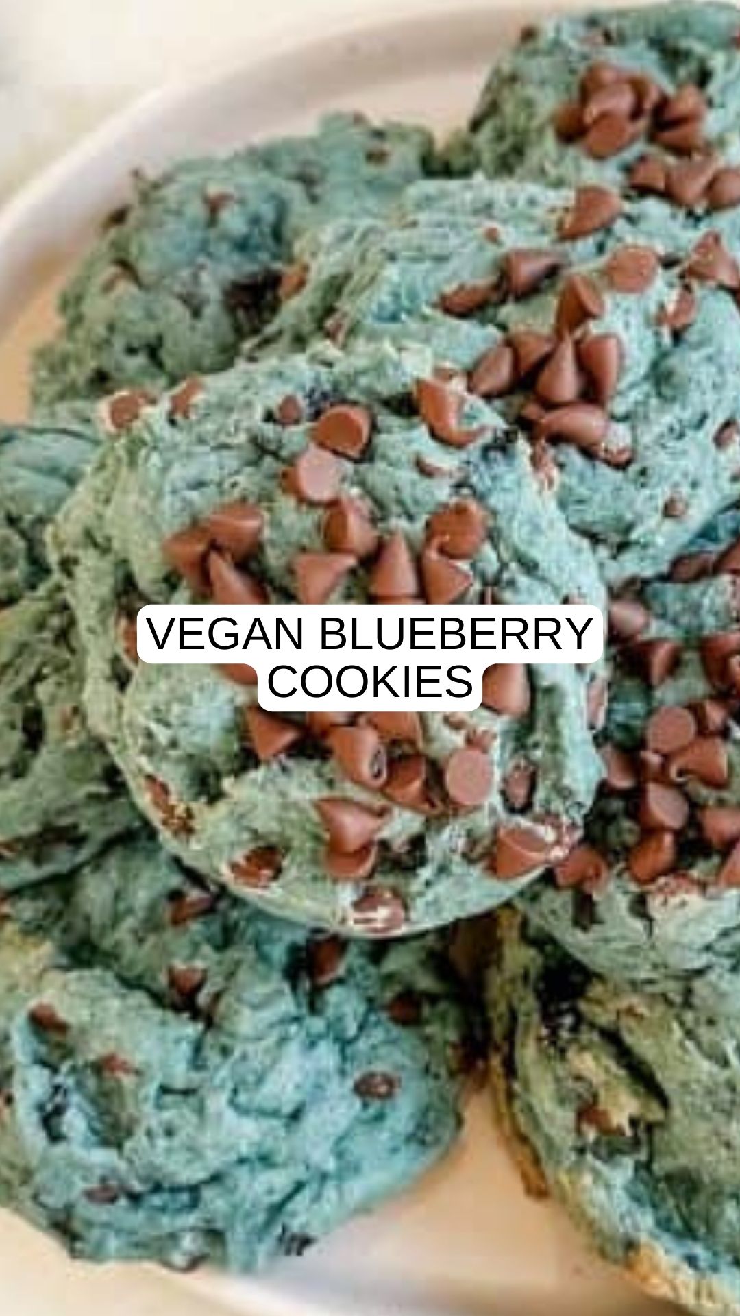 Introducing Vegan Blueberry Cookies that are naturally blue thanks to juicy frozen blueberries baked right into the dough. These delightful treats come together in less than an hour, making them perfect for any upcoming Spring gathering.