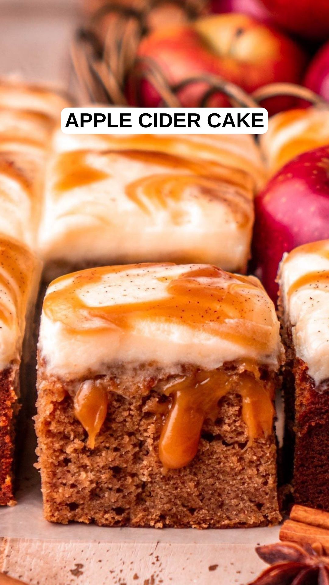 • It’s packed with delicious apple goodness and warm spices. Made with apple butter and a reduction of apple cider, every bite is infused with rich apple flavor. Plus, spices like cinnamon, nutmeg, and allspice add cozy fall vibes to the cake.
