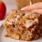 - Pour half of the cake batter into the prepared baking tin. Spoon the apple cinnamon filling evenly over the batter, then pour the remaining batter on top.