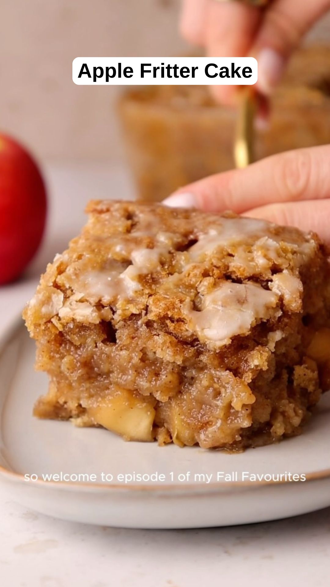 This tender cinnamon cake is filled with a gooey apple cinnamon center, topped with a sweet cinnamon brown sugar crumble, and finished with a crispy vanilla glaze. It has all the flavors of the classic apple fritter doughnut, but in cake form! This Apple Fritter Cake is the perfect dessert to cozy up with during the fall season, offering the warmth and sweetness of an apple fritter in cake form!