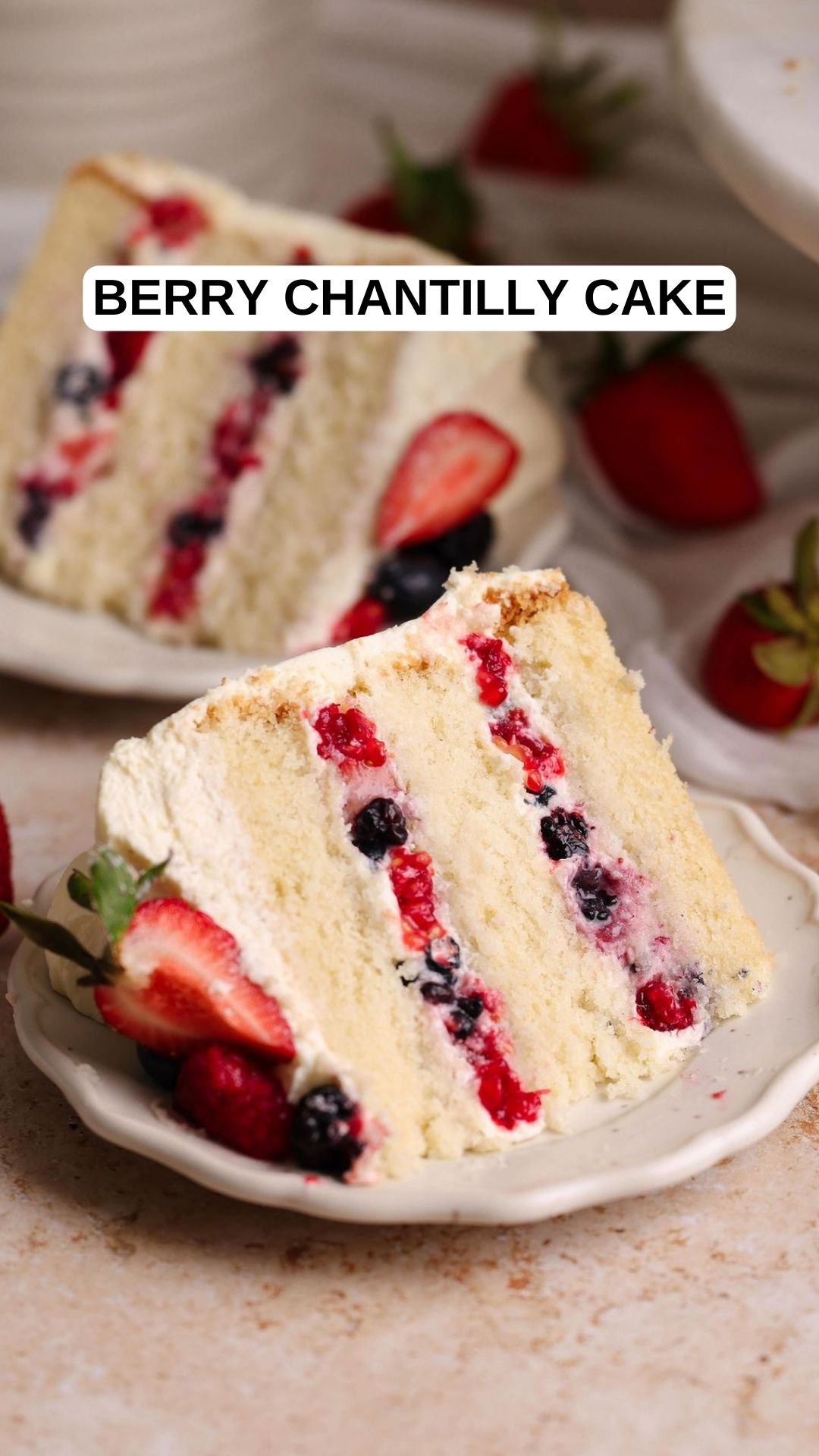 This Berry Chantilly Cake is the ultimate summer dessert! Inspired by Whole Foods but even better, it features moist vanilla cake layers, light mascarpone Chantilly cream, and loads of fresh berries. Every bite is fresh, light, and utterly delicious. Once you try this, you’ll never go back to store-bought cakes!