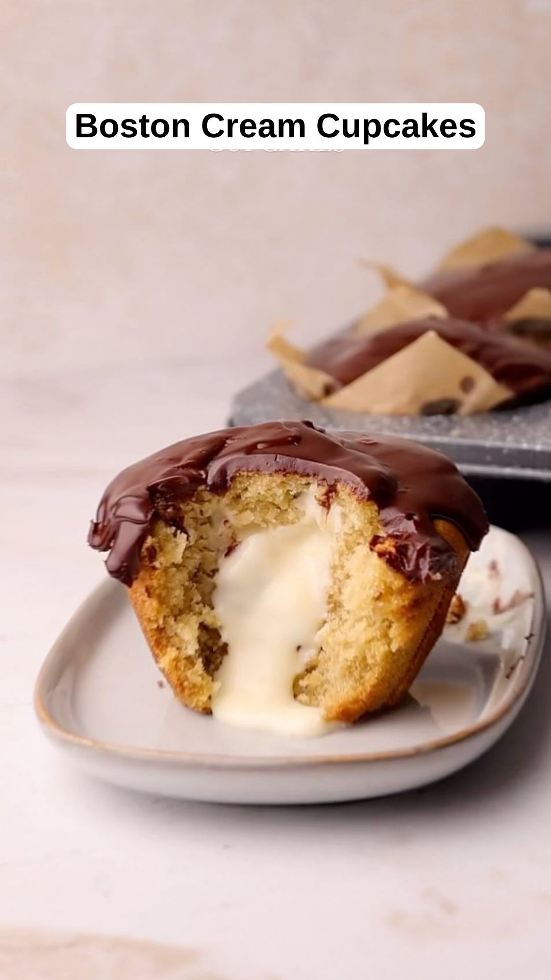 2. Enjoy these rich and creamy Boston Cream Cupcakes!