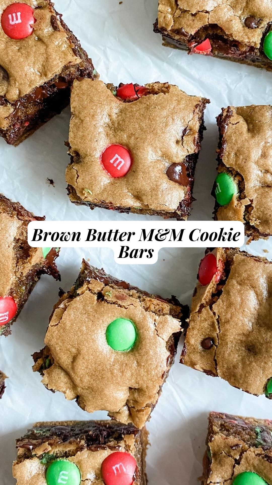 Presenting Brown Butter M&M Cookie Bars—a treat bursting with incredible flavor! These bars boast a rich caramel taste from the brown butter, studded with semi-sweet chocolate chips and festive red and green M&M’s. Enjoy them straight from the oven or warm with a dollop of vanilla ice cream for an irresistible indulgence!