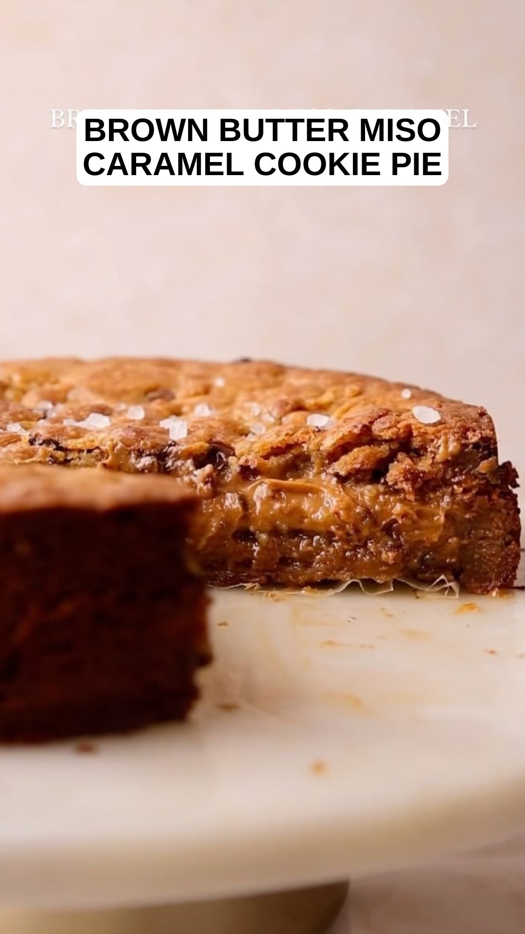 Made with rich browned butter, gooey caramel, melty dark chocolate, and a hint of salty miso, this cookie pie offers an amazing blend of sweet and savory flavors. The edges are perfectly crisp and chewy, while the center remains tender and gooey—completely irresistible!