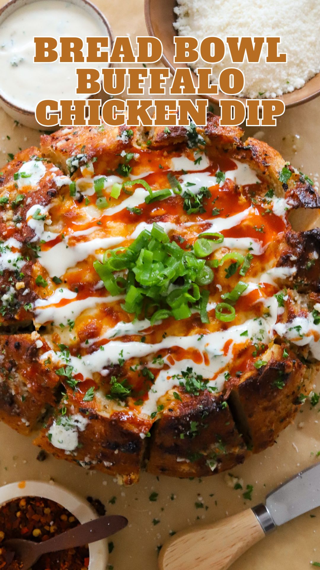 Bread Bowl Buffalo Chicken Dip