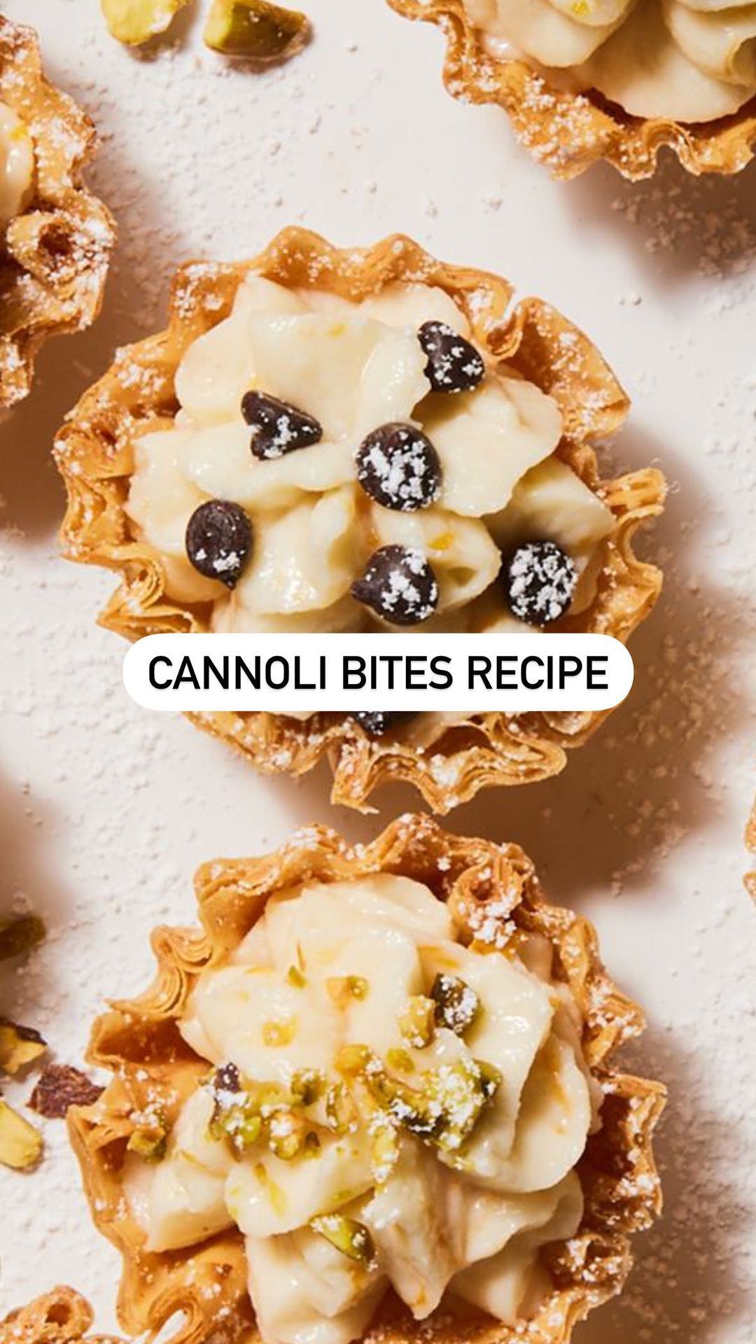 In these mini cannoli bites, we swap out the traditional cannoli shell for frozen phyllo tart shells. Then, we whip up a simple yet decadent filling using ricotta cheese, sugar, a hint of orange zest, and a splash of vanilla. Fill each little shell to the top, sprinkle with chocolate chips, pistachios, and a dusting of powdered sugar, and voilà—you’ve got yourself a taste of la dolce vita.
