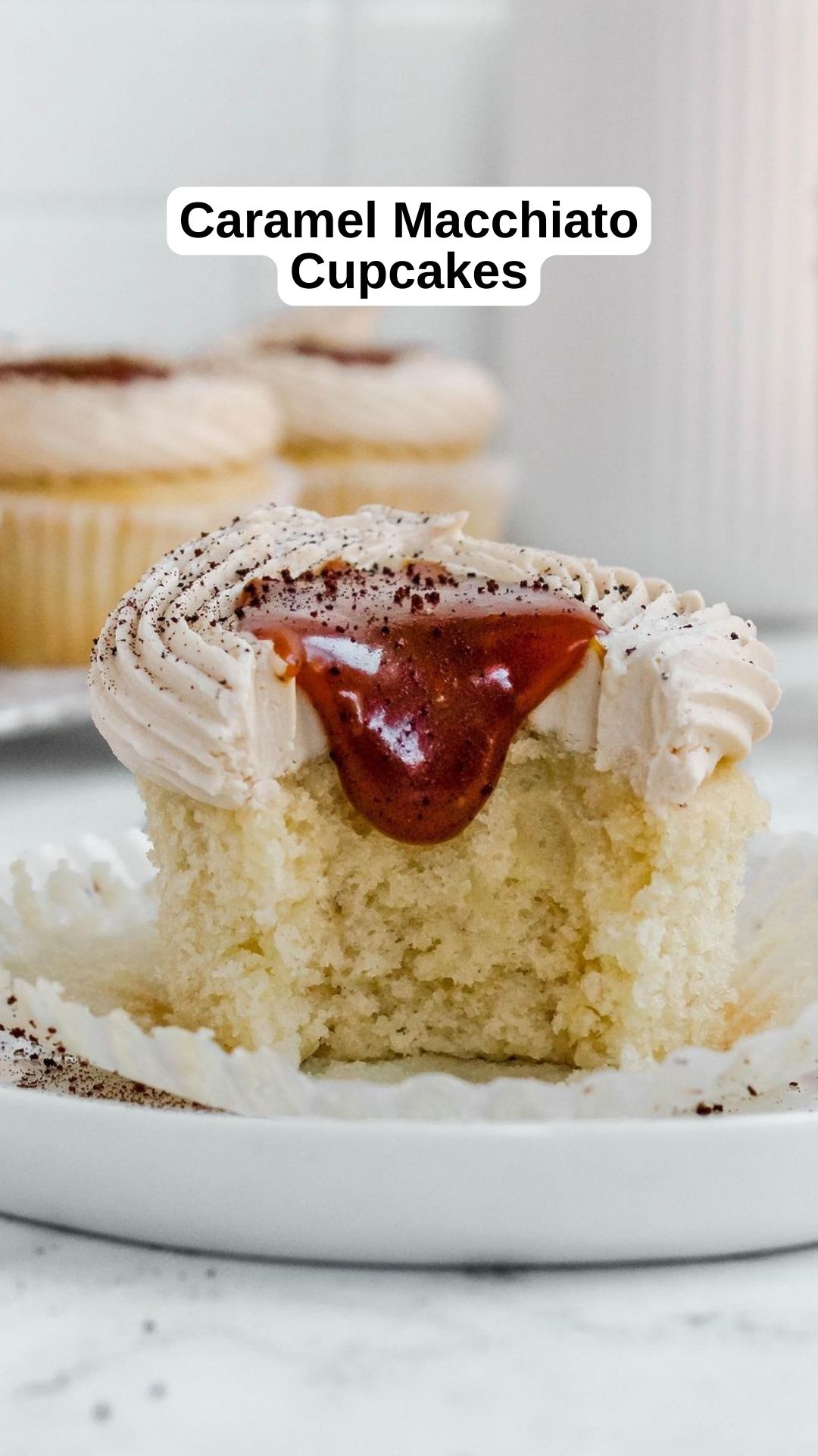 These Caramel Macchiato Cupcakes are perfect for caramel coffee lovers! Moist vanilla cupcakes pair perfectly with creamy coffee frosting. The homemade caramel is buttery and sweet, making each bite perfect. Dust with a little instant coffee to garnish, and voilà , the perfect cupcake!