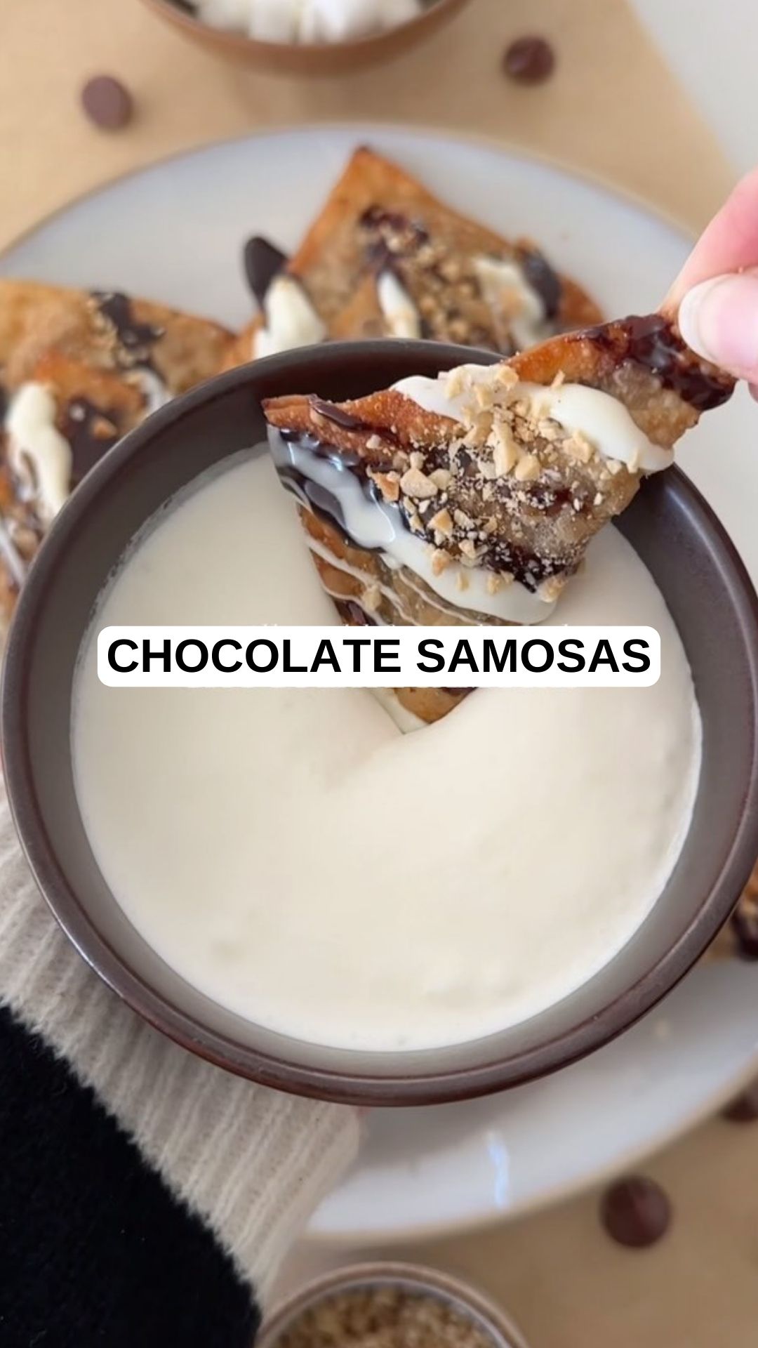 Imagine this: crispy wonton wrappers filled with rich, gooey chocolate that melts in your mouth with every bite. If you love the chocolate dumplings from Din Tai Fung, you’ll go crazy for these chocolate samosas. They ooze chocolate ganache, and just when you think they can’t get any better, you dip them in vanilla cold foam for a unique dessert experience!