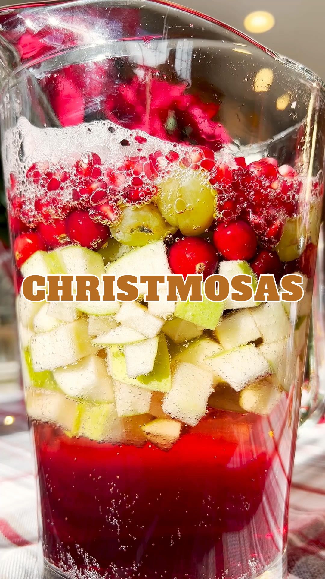 - Step 1: In a big pitcher or punch bowl, mix together chopped apples, cranberries, halved grapes, and pomegranate seeds. Then, pour in the sparkling grape juice and Champagne. Give it a good stir, and it’s ready to serve!