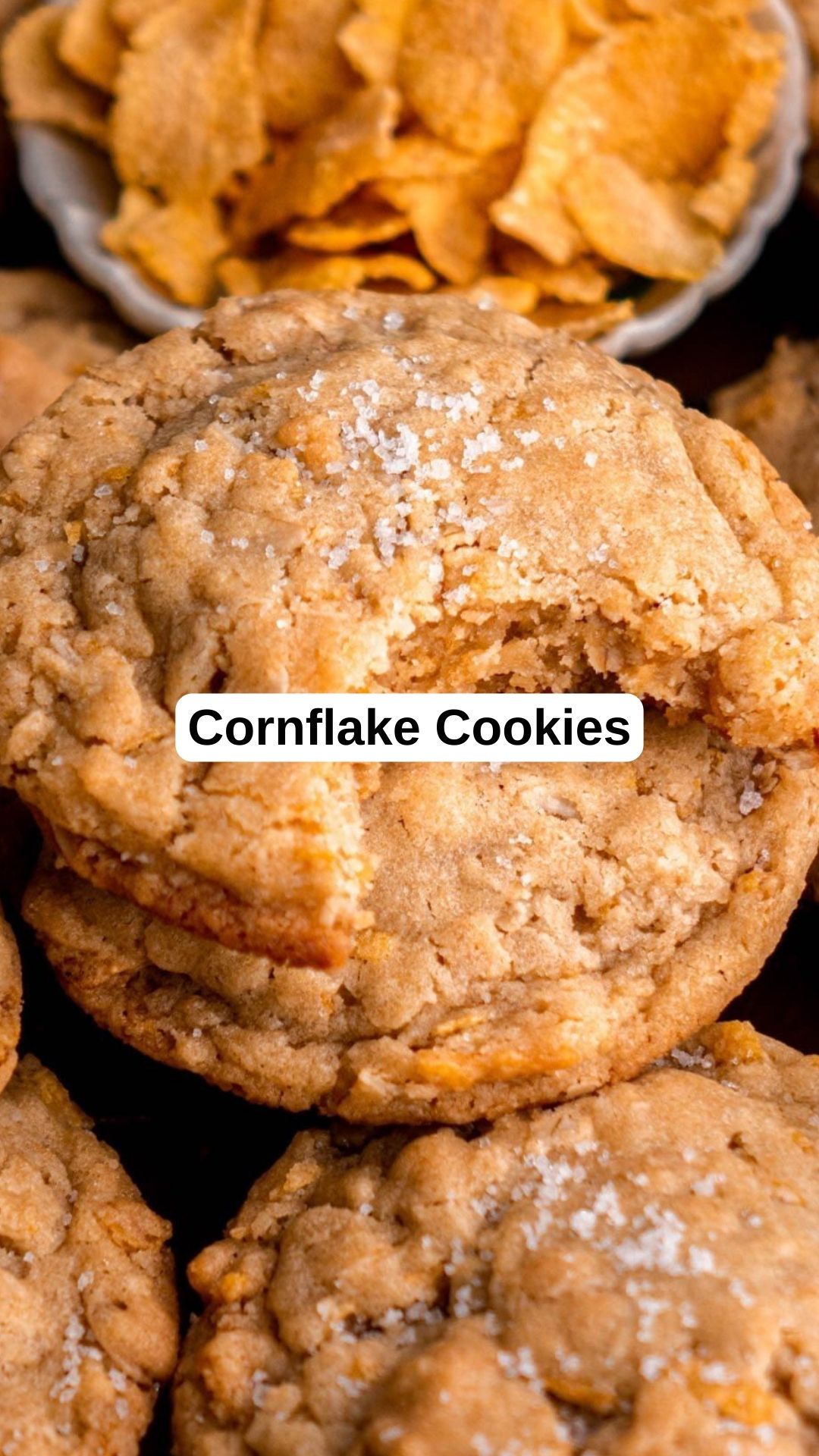 These cornflake cookies are the best! They have a buttery, caramel flavor, chewy oatmeal-like centers, and a nice crunch from the cornflakes, all topped with flaky sea salt.