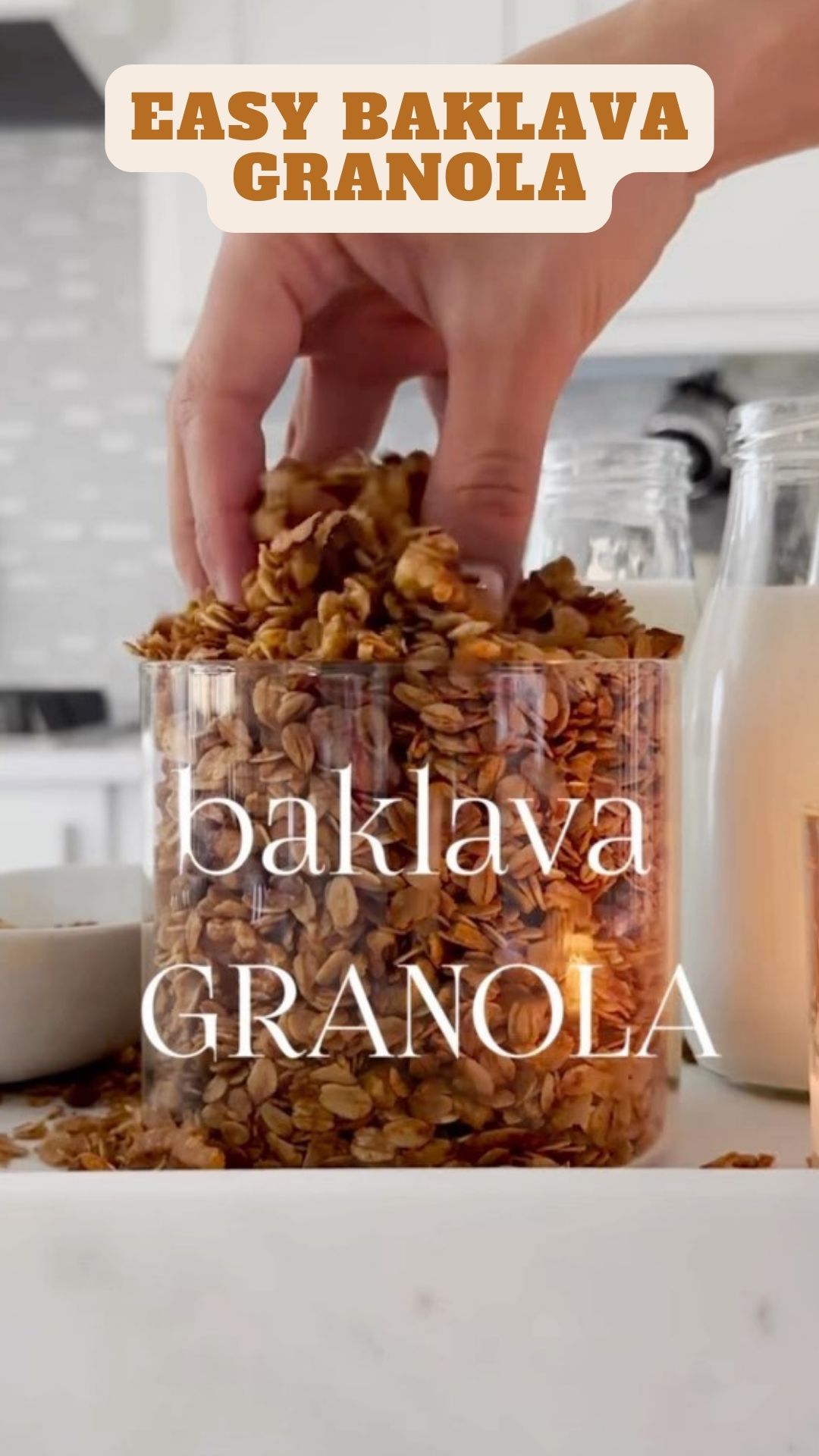 Say goodbye to store-bought granola and get ready to make your own delicious Baklava-style version! All you need are a few basic ingredients that you probably already have in your kitchen. This homemade granola is a delightful mix of cinnamon, nutmeg, ghee (clarified butter), and honey. It’s super easy to whip up and tastes amazing when sprinkled over yogurt or served with milk.