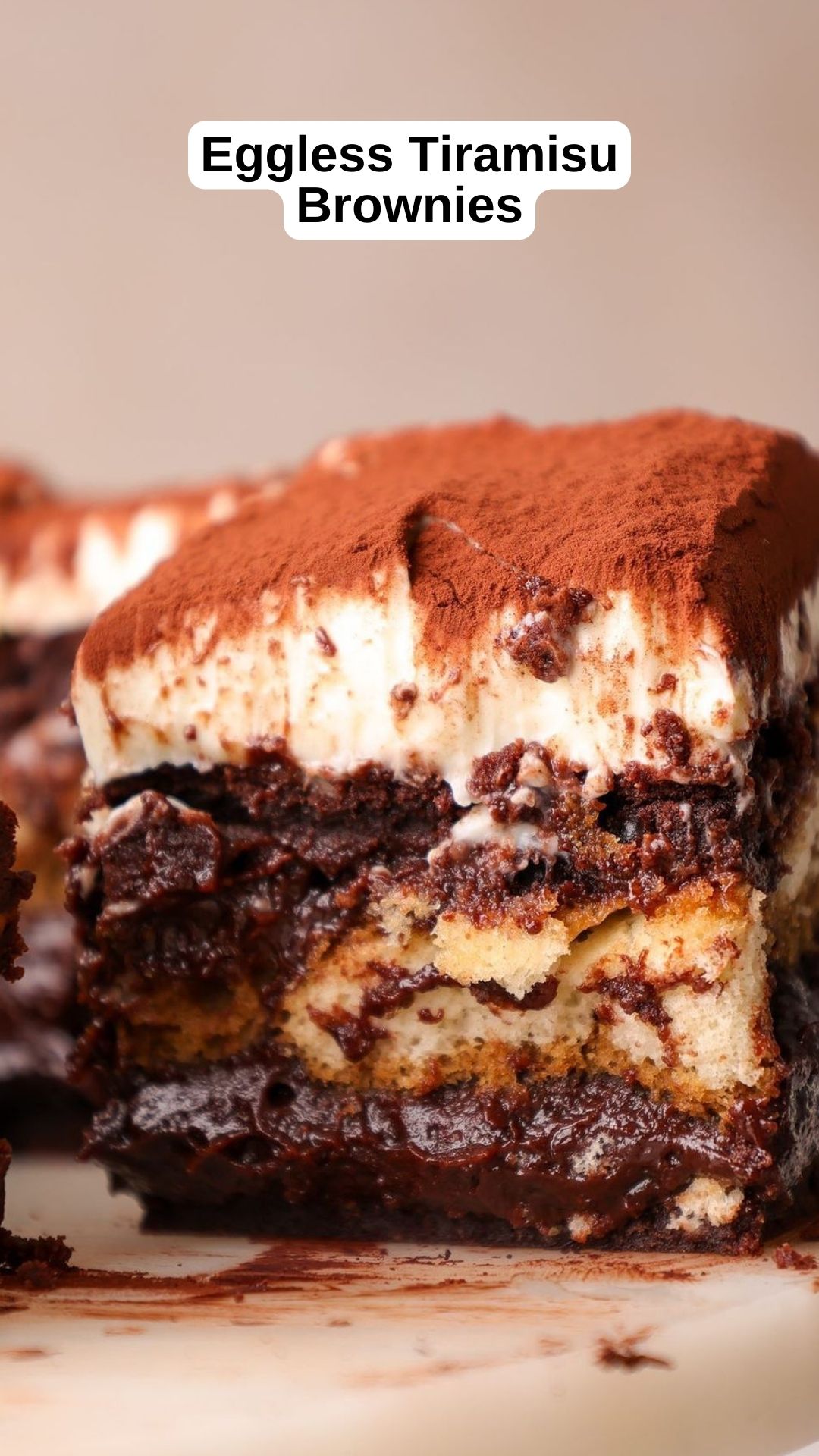 These rich, fudgy brownies are filled with coffee-soaked sponge fingers, topped with creamy frosting, and dusted with cocoa powder. They are gooey and chocolatey with hints of coffee throughout, creating a perfect blend of two classic desserts.