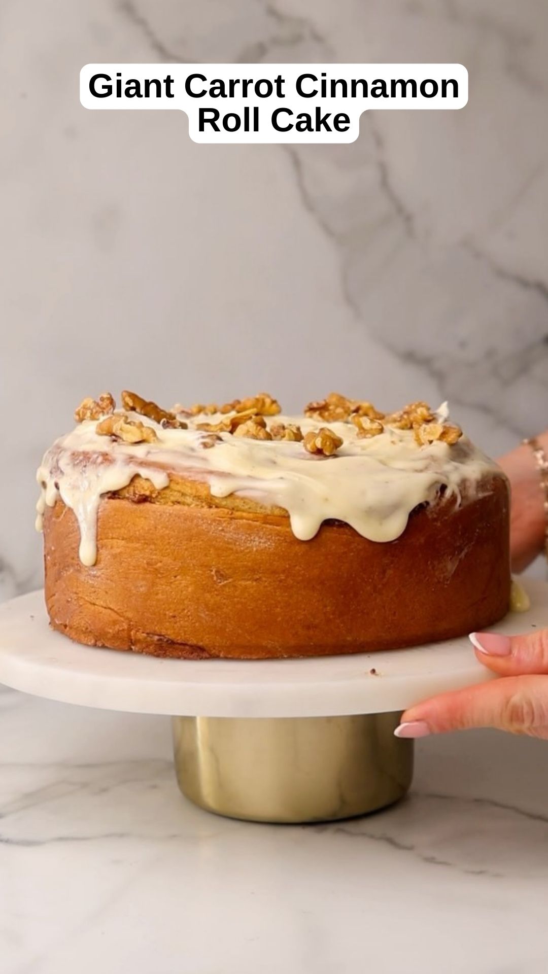 This Giant Carrot Cinnamon Roll Cake is like a giant cinnamon roll, filled with carrots and warm spices, and topped with a delicious cream cheese frosting. It’s easy to slice and serve just like a cake!
