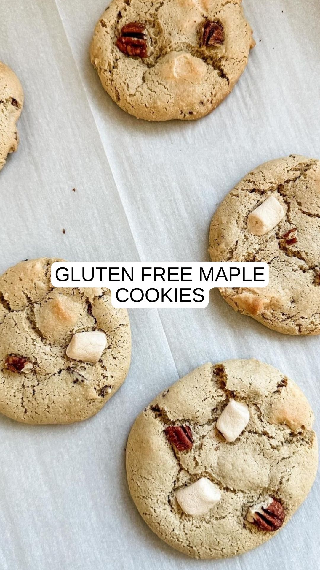 Introducing Gluten-Free Maple Cookies: a delightful blend of crispy edges and chewy centers, infused with rich maple flavors and crunchy candied pecans, all without the gluten or grains.