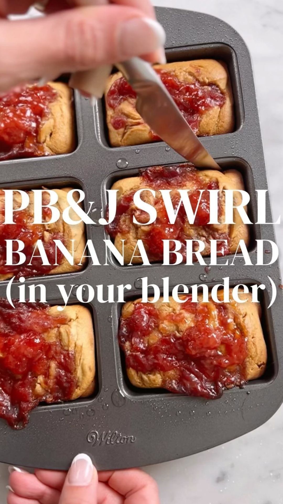 2. Blend all the ingredients until smooth. Then, pour the batter into the mini loaf pan or regular loaf pan. Swirl your favorite jam on top.